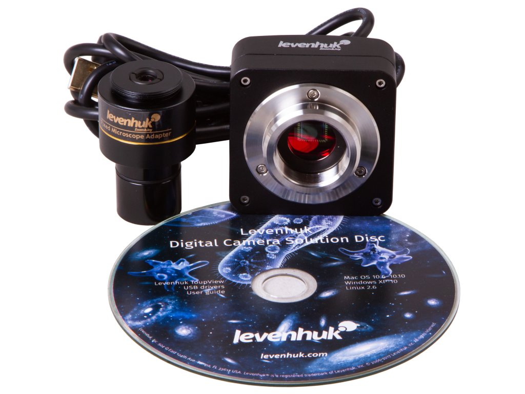 Digitální trinokulární mikroskop Levenhuk D400T je kompatibilní s digitálními fotoaparáty Levenhuk (další fotoaparáty lze zakoupit samostatně). Fotoaparáty Levenhuk se instalují do tubusu okuláru namísto okuláru.