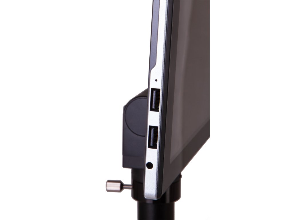 Digitální trinokulární mikroskop Levenhuk MED D30T LCD je kompatibilní s digitálními fotoaparáty Levenhuk (kupují se samostatně). Fotoaparáty Levenhuk se instalují místo okuláru na jeho tubus.
