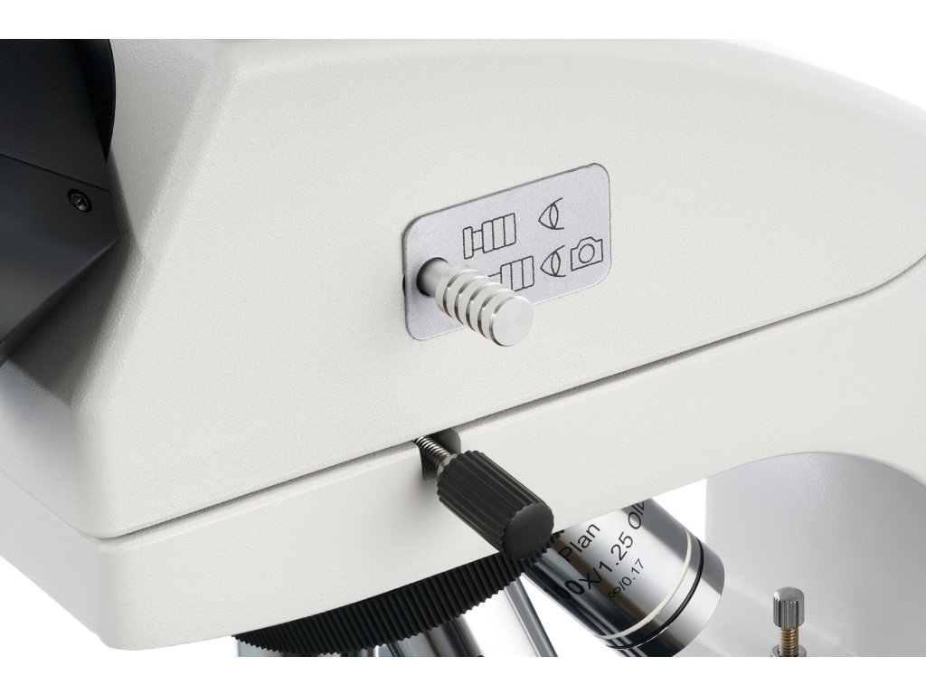 Širokoúhlé okuláry zajišťují jasné vidění, obsahují funkci s 10x zvětšením a umožňují nastavení dioptrické korekce. K dispozici je pět čoček objektivů s různým zvětšováním; čočky se zvětšením 100x jsou vhodné pro pozorování metodou s ponořením do imerzního oleje. Tři objektivy jsou vybaveny pružinovými okraji, které chrání optiku před náhodným poškozením. Všechny optické povrchy příslušenství jsou chráněny proti plísním.