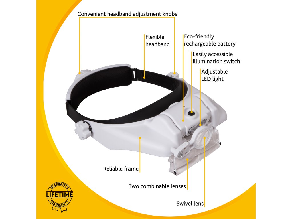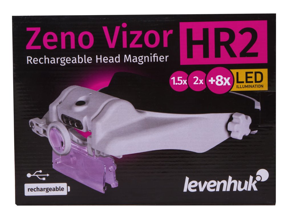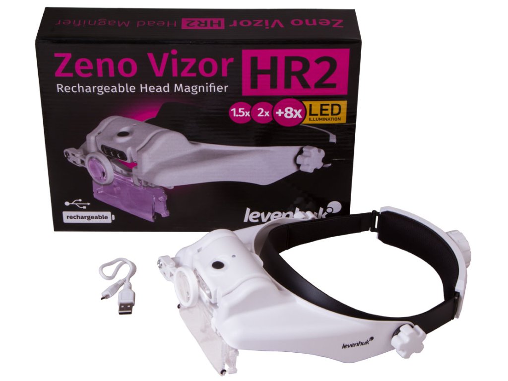 Dobíjecí náhlavní lupy Levenhuk Zeno Vizor HR jsou nenahraditelné optické nástroje pro práci vyžadující vysokou preciznost, které umožňují zvolit vhodné zvětšení nebo je lze použít jako ochranné brýle. Tato lupa se dodává s čočkami s různým zvětšením, které lze snadno kombinovat. Také lze použít další sklopnou čočku na pravé oko. Pokud nepotřebujete sledovat něco zvětšeně, stačí lupu vyklopit nahoru nebo použít čočku s 1,5x zvětšením. Lupa se tak promění v ochranné brýle pro stavební práce. Lupa má jedinečné vlastnosti pro používání optiky.