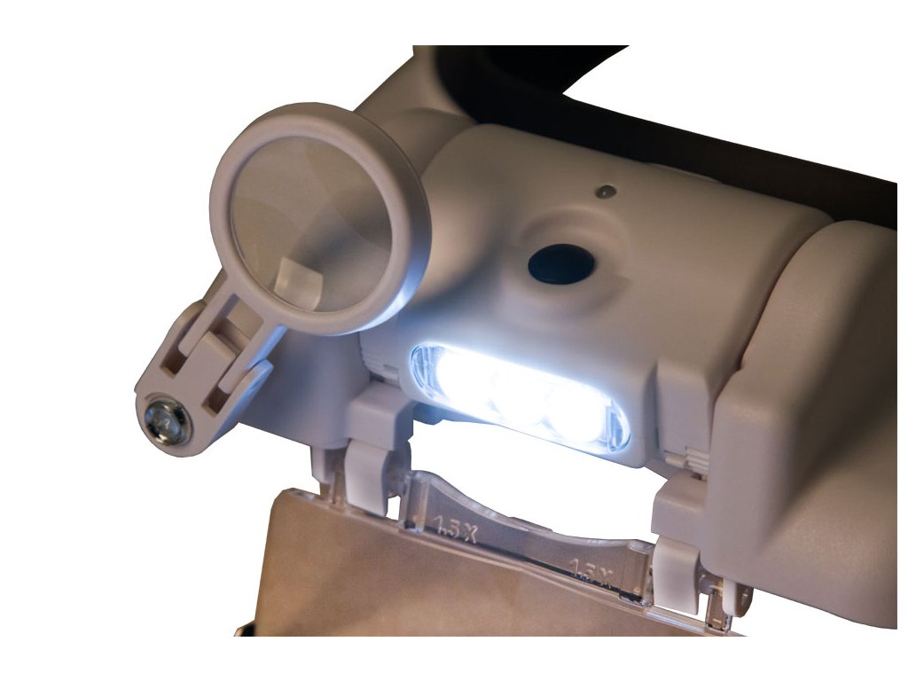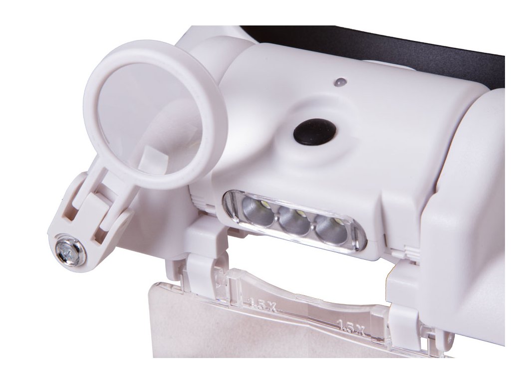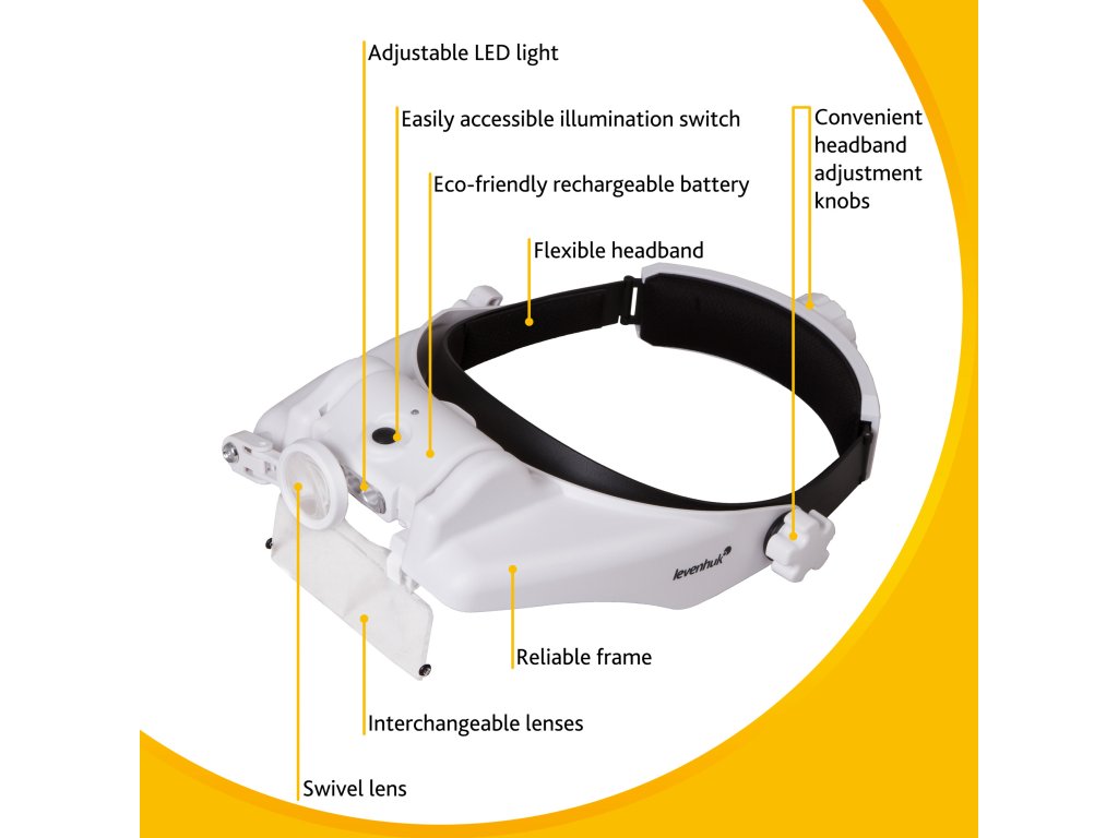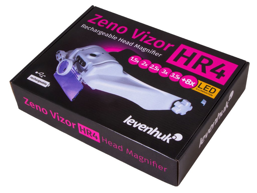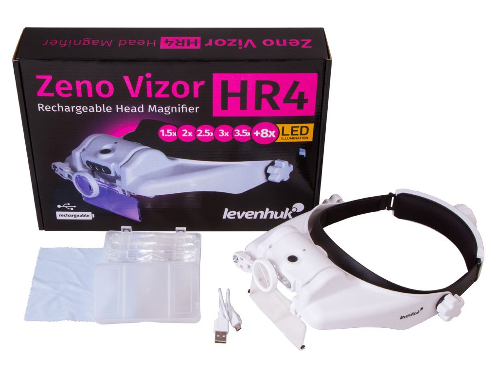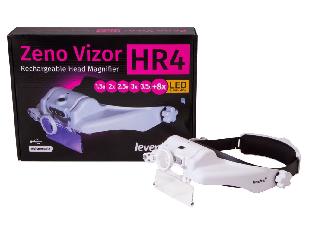 Dobíjecí náhlavní lupy Levenhuk Zeno Vizor HR jsou nenahraditelné optické nástroje pro práci vyžadující vysokou preciznost, které umožňují zvolit vhodné zvětšení nebo je lze použít jako ochranné brýle. Tato lupa se dodává s čočkami s různým zvětšením, které lze snadno kombinovat. Také lze použít další sklopnou čočku na pravé oko. Pokud nepotřebujete sledovat něco zvětšeně, stačí lupu vyklopit nahoru nebo použít čočku s 1,5x zvětšením. Lupa se tak promění v ochranné brýle pro stavební práce. Lupa má jedinečné vlastnosti pro používání optiky.