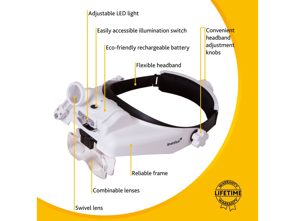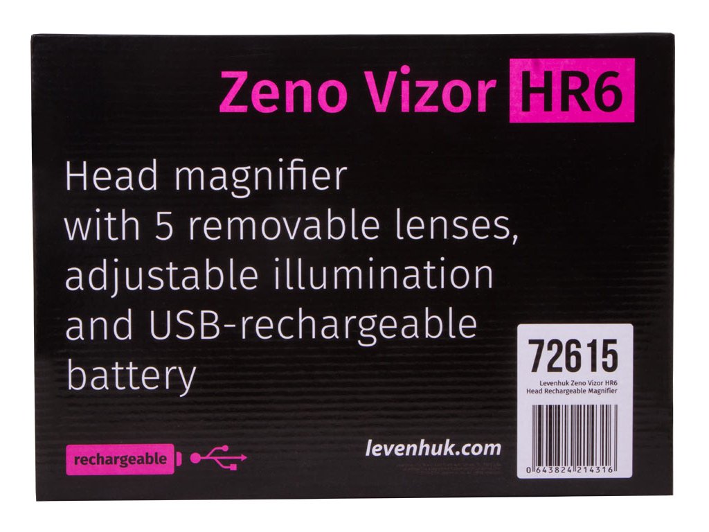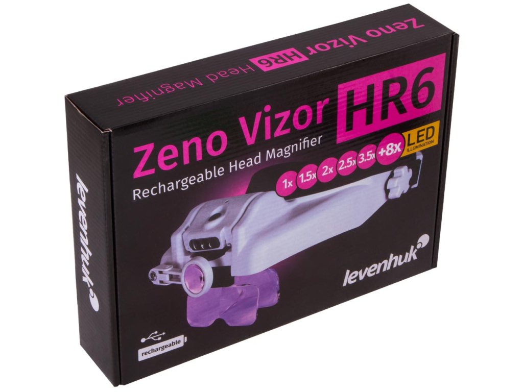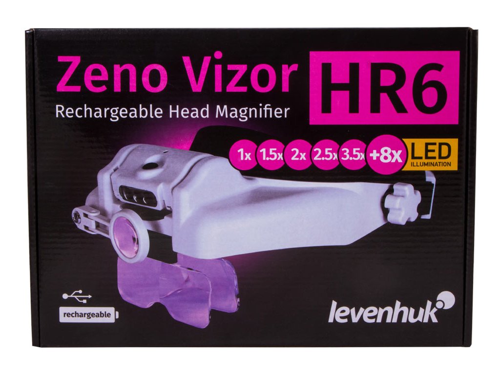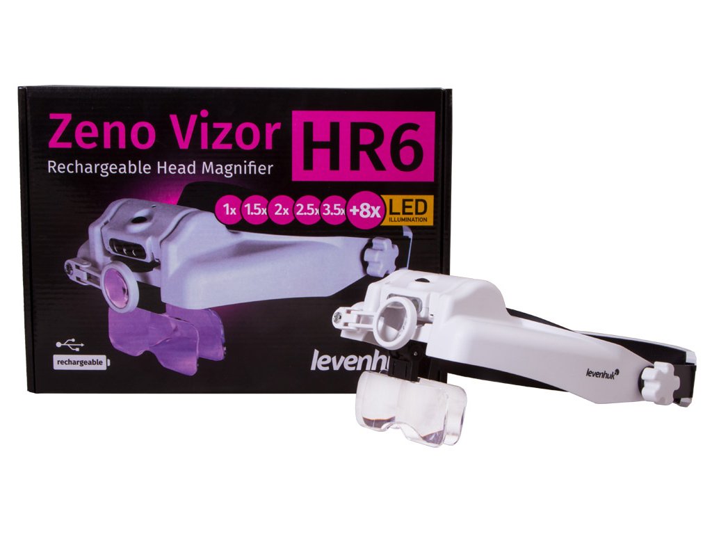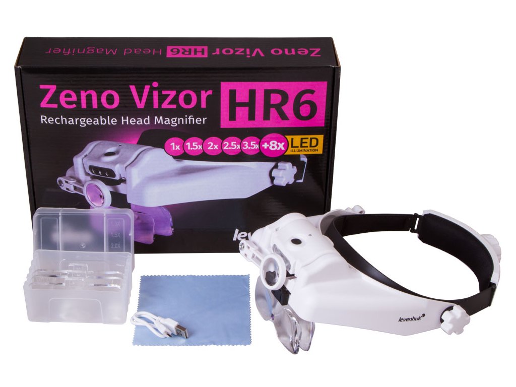 Dobíjecí náhlavní lupy Levenhuk Zeno Vizor HR jsou nenahraditelné optické nástroje pro práci vyžadující vysokou preciznost, které umožňují zvolit vhodné zvětšení nebo je lze použít jako ochranné brýle. Tato lupa se dodává s čočkami s různým zvětšením, které lze snadno kombinovat. Také lze použít další sklopnou čočku na pravé oko. Pokud nepotřebujete sledovat něco zvětšeně, stačí lupu vyklopit nahoru nebo použít čočku s 1x zvětšením. Lupa se tak promění v ochranné brýle pro stavební práce. Lupa má jedinečné vlastnosti pro používání optiky.