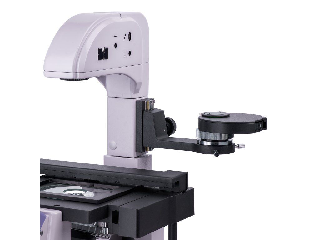 Procházející světlo zajišťuje 30 W halogenové osvětlení. Tento zdroj svítí jasně a zajišťuje teplé spektrum světla. Pozorování je proto u každého objektivu efektivní a pohodlné pro oči. Mikroskop má kondenzor fázového kontrastu se čtyřmi sloty: jeden je používán pro světlé pole a další tři jsou určeny pro 10x, 20x a 40x objektivy s fázovým kontrastem. Fázové prstence lze vystředit. Otáčením disku můžete přepínat ze světlého pole na fázový kontrast a zpět. Tento systém je vhodný pro výzkum, kde šetří čas při práci.