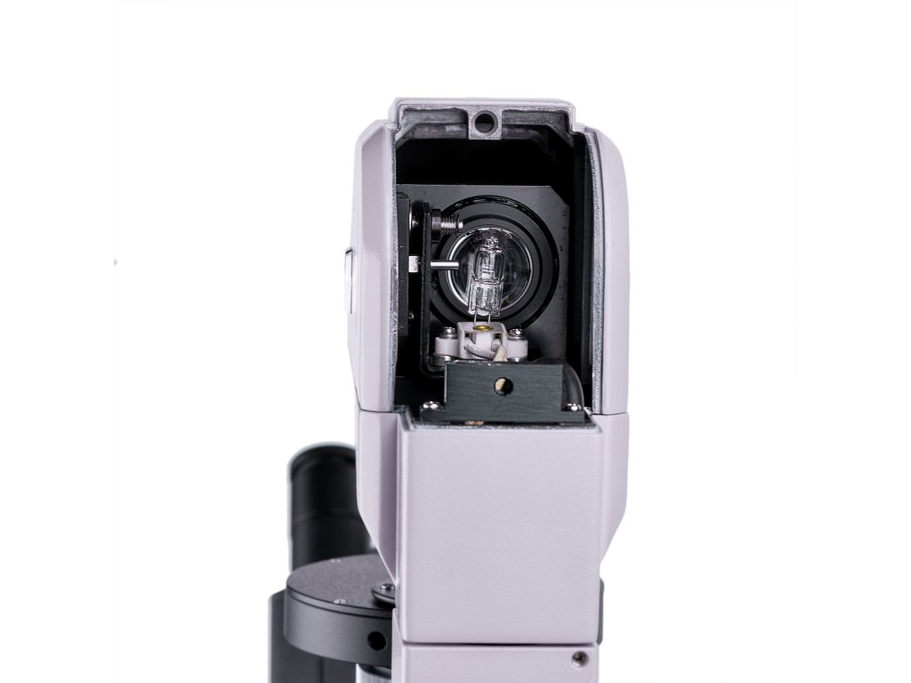 - 100 W rtuťová výbojka jako zdroj odraženého světla, 30 W halogenová výbojka jako zdroj procházejícího světla; Köhlerova osvětlovací soustava