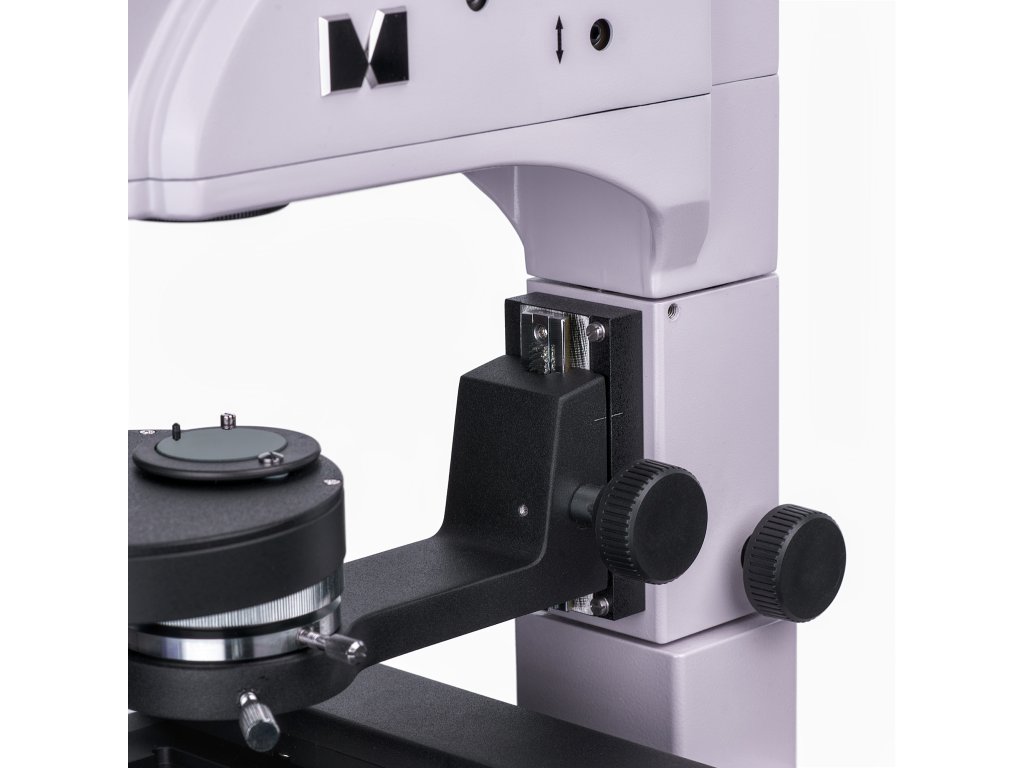Dvě možnosti montáže digitálního fotoaparátu a monitoru: na trinokulární tubus se montuje monitor (není součástí dodávky); boční otvor na těle je určen k montáži digitálního fotoaparátu (není součástí dodávky). K dispozici je rozdělovač paprsků: 100/0 nebo 0/100 (na těle) a 100/0 nebo 50/50 (na trinokulární hlavě). Úhel sklonu tubusu okuláru 45° umožňuje pozorování s maximálním komfortem. Při sestavování mikroskopu může uživatel otáčet tubusy okuláru o 180°.