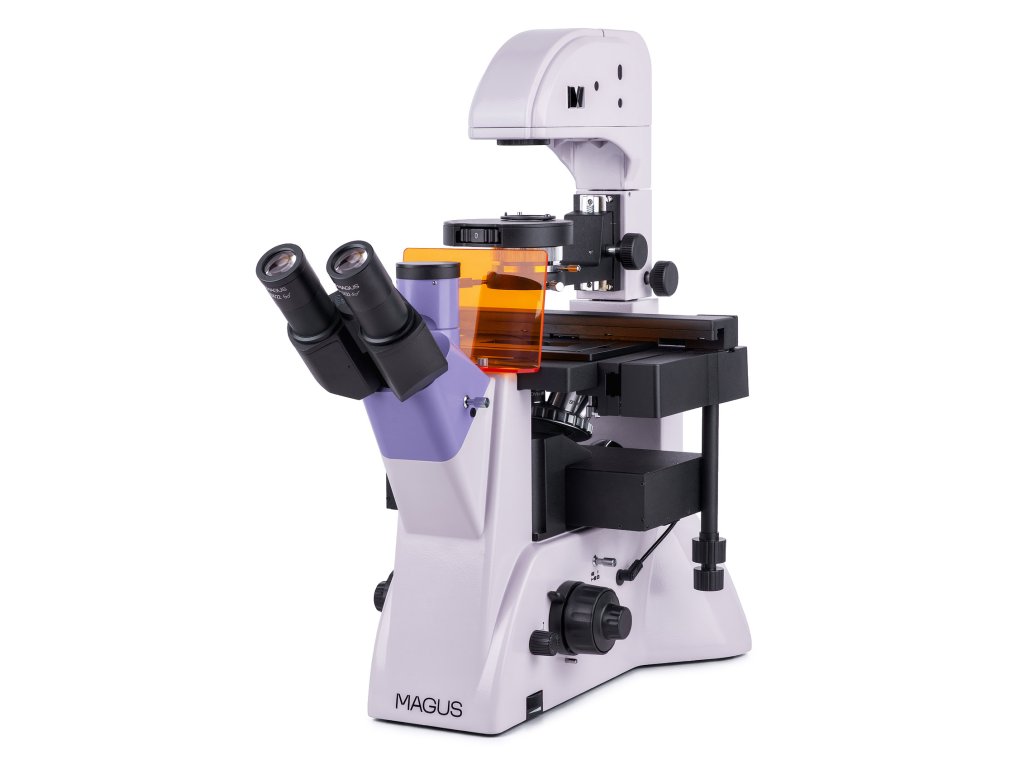 MAGUS Lum V500L je inverzní mikroskop pro fluorescenční mikroskopii v odraženém světle a mikroskopii ve světlém poli a s fázovém kontrastem v procházejícím světle. Pro fluorescenční mikroskopii se používají fluorochromové filtry DAPI, FITC a TRITC. Invertovaná konstrukce umožňuje studium vzorků v laboratorních nádobách, jako jsou Petriho misky, baňky atd. Výška laboratorních nádob může být 55 mm až 165 mm v případě, když je stojan nakloněný. Optický systém je určen pro laboratorní nádoby s tloušťkou dna 1,2 mm. Mikroskop je skvělou volbou pro výzkum i rutinní laboratorní práce a může být použit také pro účely vzdělávání.