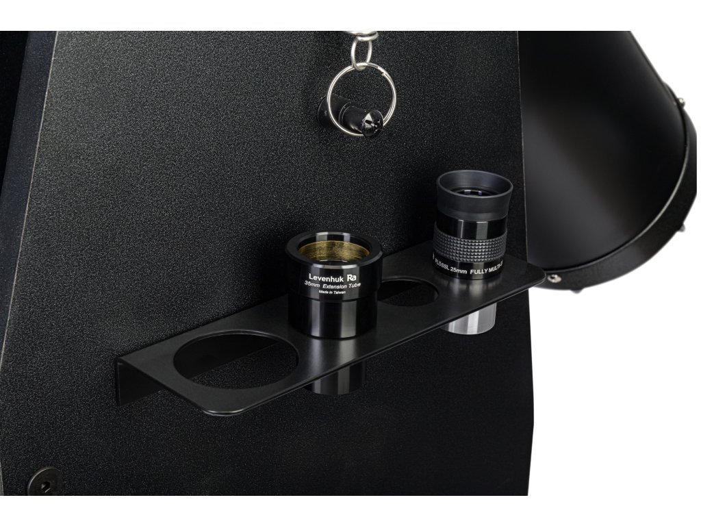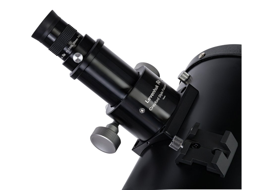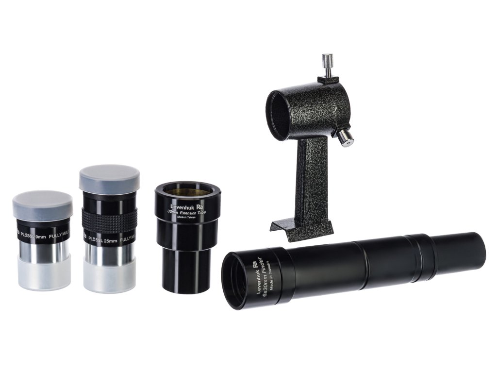 Součástí sady jsou dva symetrické okuláry: 9 mm a 25 mm. Zajišťují dobrý obraz a umožňují rychle začít studovat hvězdnou oblohu. Hledání astronomických objektů se provádí pomocí optického hledáčku 6x30 mm.