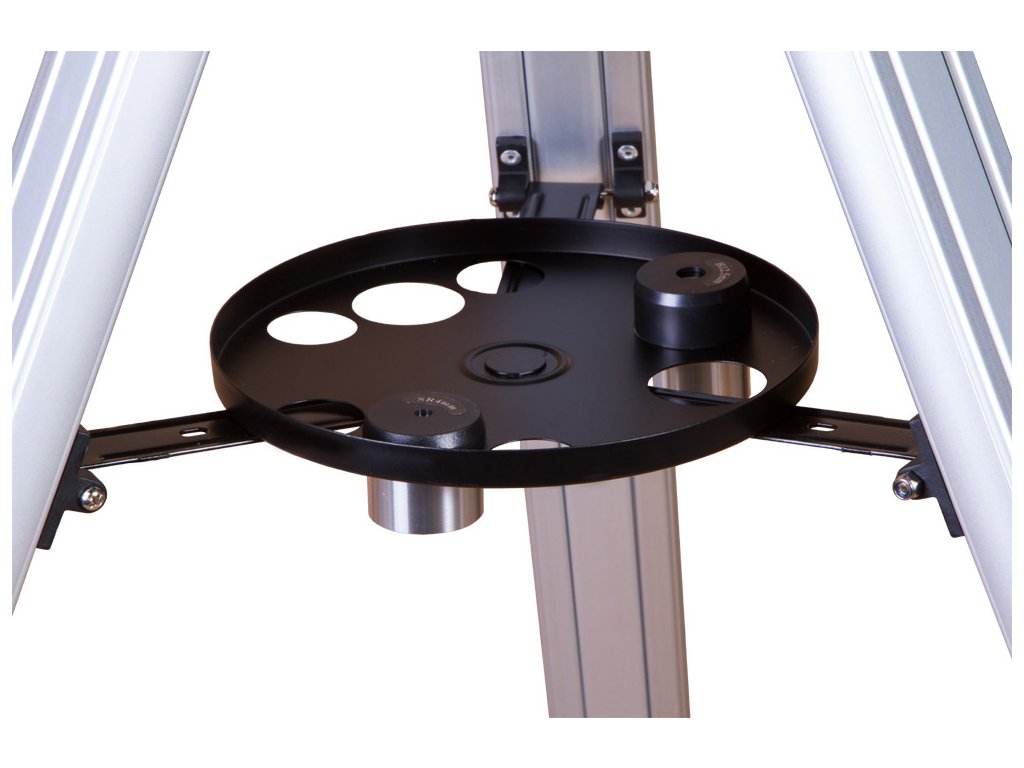 Teleskop je namontován na trvanlivém hliníkovém stativu s nastavitelnou výškou. Teleskop spolehlivě stojí i na drsných površích, nehýbe se pod silným větrem; drží pevně teleskop s montáží a protizávažím. Zásobník pro příslušenství může být snadno nainstalován na stativu (součást sady).