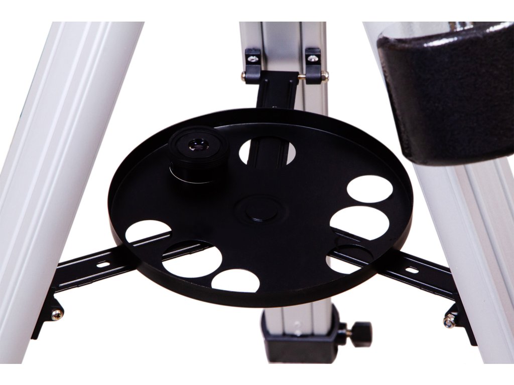 Teleskop je nainstalován na ekvatoriální montáži. Ta usnadňuje zaměřování astronomických objektů na obloze. Nicméně, naučit se manipulaci s touto montáží nějakou dobu zabere. Montáž se instaluje na hliníkový stativ. Můžete ji umístit prakticky kamkoli, protože výšku nohou lze individuálně nastavit. K dispozici je odkládací přihrádka na příslušenství.