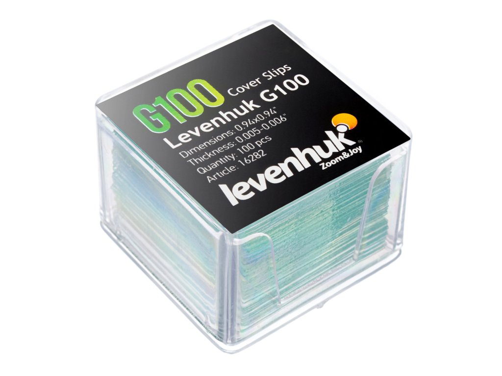 Krycí sklíčka Levenhuk G100 jsou určena k práci s materiály různé složitosti. Vyrábějí se pomocí moderních technologií z vysoce kvalitního skla a vykazují vysoký stupeň transparentnosti. Tato krycí sklíčka lze použít s každým mikroskopem. Jejich sklo je homogenní, bez prasklin či bublinek, což zajišťuje nejlepší možné pozorování bez jakéhokoli zkreslení. Veškerá sklíčka mají čtvercový tvar a vykazují konstantní vlastnosti po celém povrchu.