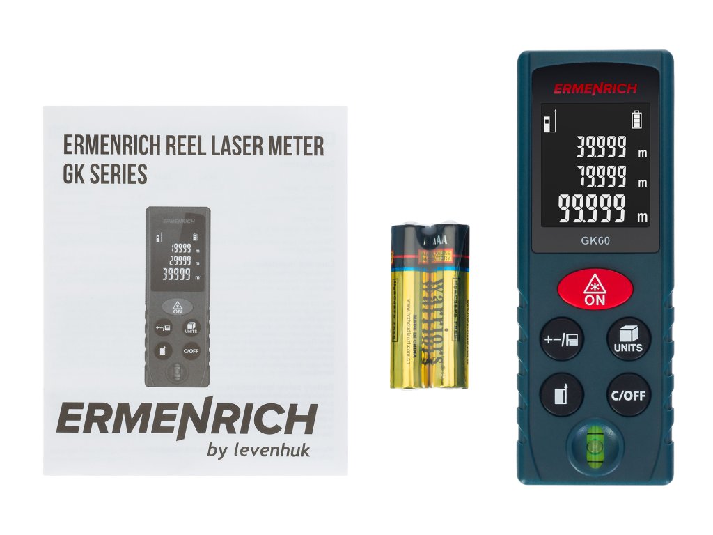 Laserový měřič Ermenrich Reel GK60 je určen pro přesné měření vzdáleností, výpočet plochy a objemu. Snadno použitelný s kompaktním, odolným tělem a 3řádkovým displejem se svinovací metr stane užitečným nástrojem při profesionálních činnostech i v domácnosti.