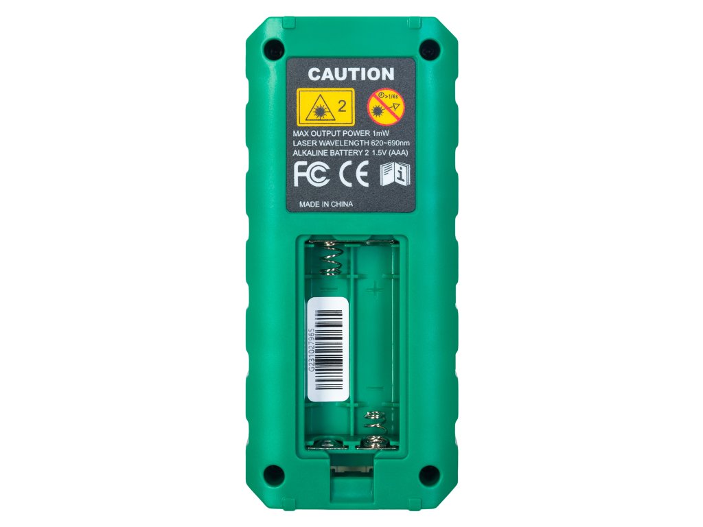 Pro napájení se používají standardní AAA baterie. Dvě baterie vystačí na 5 000 měření. Funkce automatického vypnutí pomáhá šetřit energii baterií: po 30 sekundách nečinnosti se vypne laser a po 180 sekundách se vypne měřič.