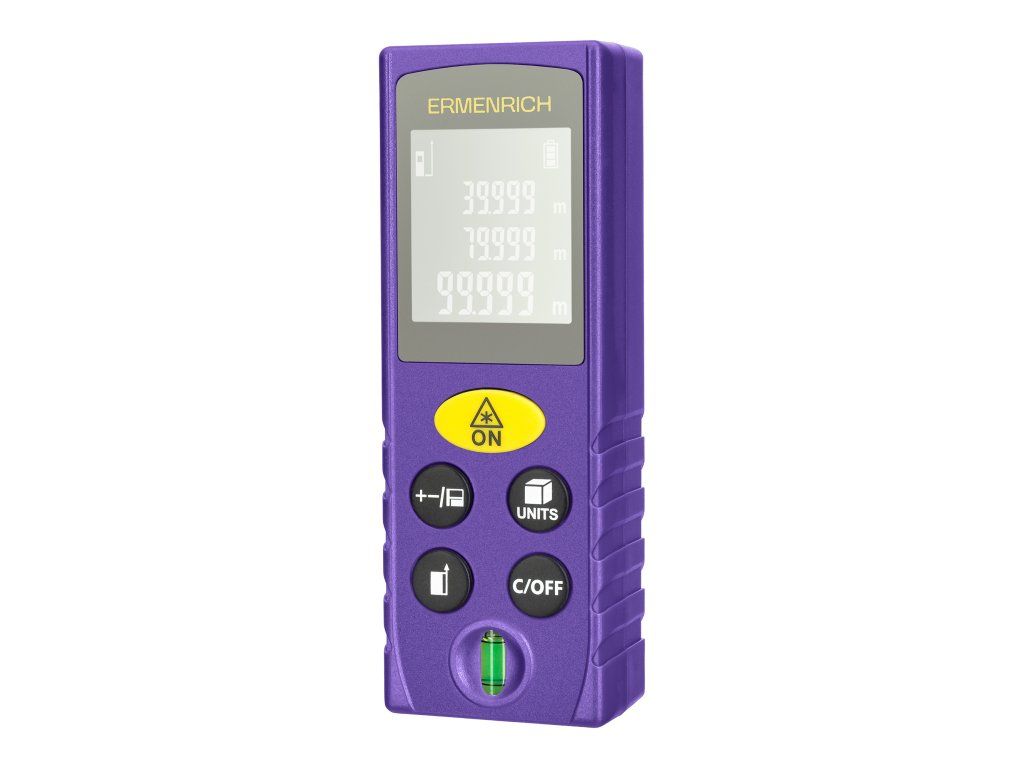 Laserový měřič Ermenrich Reel PLUS GK40 se používá k řešení mnoha stavebních, opravárenských, technických nebo domácích úkolů. Umožňuje provádět přesná měření v rozsahu do 40 metrů a vypočítat objem a plochu. Pro měření v obtížných podmínkách, kdy není možné měřič správně umístit, je k dispozici funkce Pythagorovy věty – pomocí nepřímých měření pomáhá vypočítat vzdálenost k požadovanému bodu. Přístroj má také bublinkovou vodováhu, kterou lze použít pro přesnou instalaci měřiče i jako samostatný nástroj.