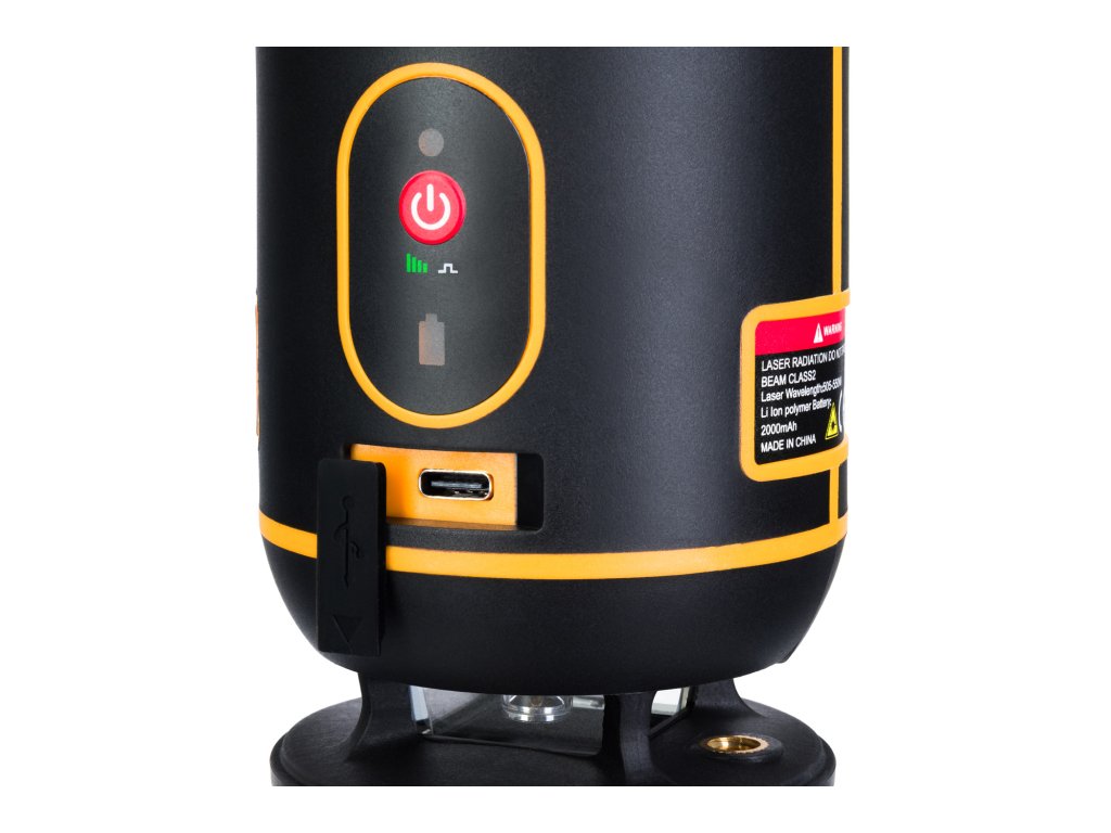 Vestavěná lithiová dobíjecí baterie laserového nivelačního přístroje Ermenrich LN20 poskytuje dlouhou výdrž baterie, která závisí na zvolené úrovni jasu (k dispozici jsou čtyři možnosti). I při maximálním jasu vydrží LED diode svítit až 8 hodin, což znamená, že nemusíte dobíjet hladinu laserového nivelačního přístroje během celé pracovní směny. Laserový nivelační přístroj je odolný proti nárazům, prachu a postříkání vodou. Pohodlně jej lze upevnit na stativ se standardním 1/4" závitem.