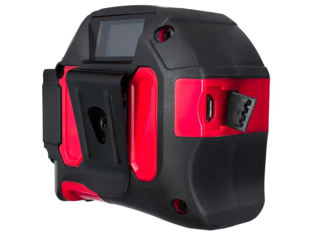 - Červený laser s rozsahem měření až 40 metrů