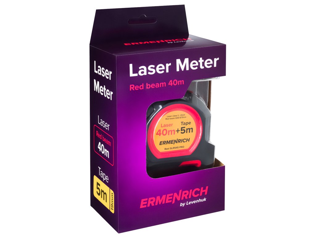 Rozsah měření laseru je 40 metrů a lze jej použít pro nejrůznější aplikace v městských bytech i venkovských domech. Pokud jde o samotný svinovací metr, má stupnici na jedné straně pásky, je 5 metrů dlouhý a je vybaven magnetickým háčkem. Samozamykací (aretační) mechanismus umožňuje rychlé a snadné použití tohoto měřicího nástroje. Kompaktní pouzdro laserového svinovacího metru Ermenrich Reel SLR545 PRO je vyrobeno z vysoce odolného ABS plastu a má pogumovaný povrch. Spona na opasek umožňuje snadné přichycení laserového měřiče k vašemu oděvu a používat jej bez použití rukou.