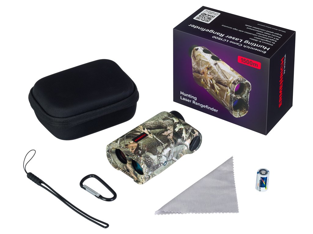 Laserový dálkoměr Levenhuk Camo LC1500 je měřicí zařízení pro práci se stacionárními objekty a pohyblivými cíli. Měří horizontální a vertikální vzdálenosti (délku a výšku), horizontální a vertikální úhly a rychlost. Dálkoměr je díky kompaktním rozměrům a nízké hmotnosti vhodný pro použití na túrách, lovu, na stavbách, při sportovních akcích a při pátracích a záchranných akcích. Nebude vás zatěžovat, i když jej bude zapotřebí nosit celý den. Maximální pracovní rozsah dálkoměru je 1500 metrů. Tělo má ochranný (maskovací) vzor.