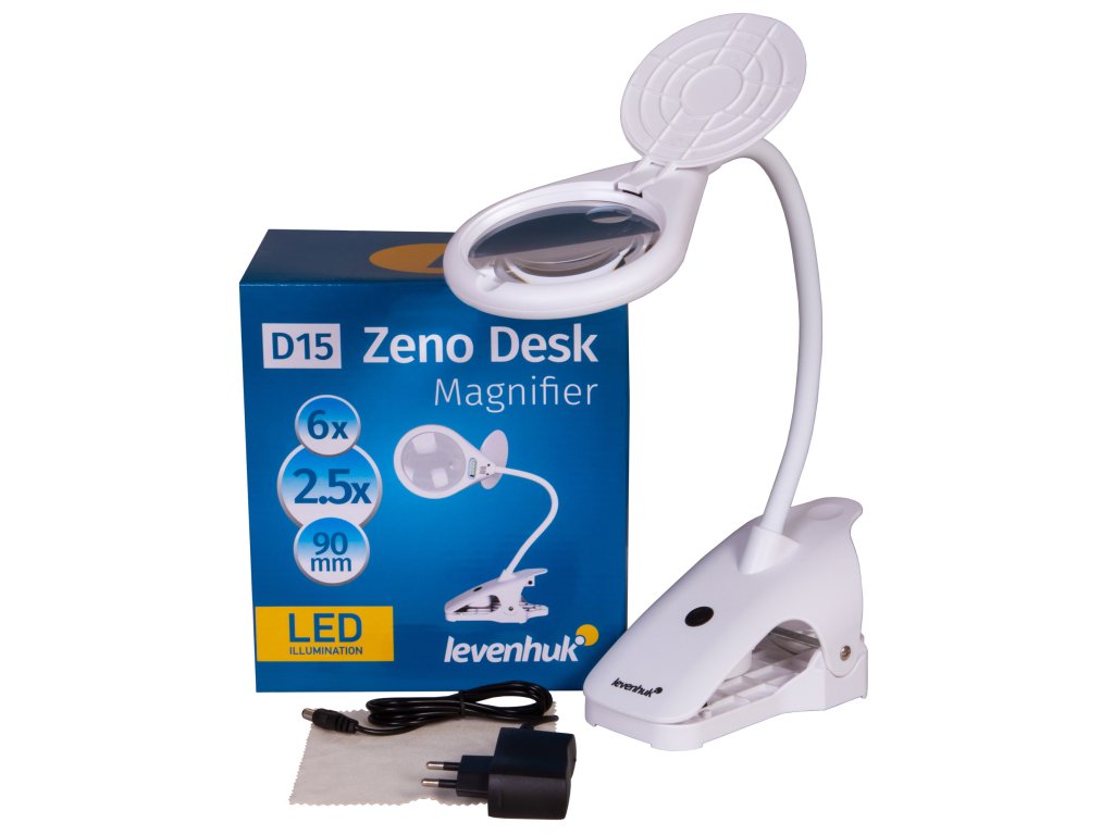 Stolní lupa Levenhuk Zeno Desk D15 má zajímavý design: může být připevněna téměř na jakýkoliv povrch. Můžete ji umístit na stůl nebo připevnit svorkou k polici nebo ke dvířkům skříňky. Tato lupa je vynikajícím pomocníkem v domácí dílně, v kuchyni nebo v řemeslné dílně, kanceláři nebo v servisním centru.