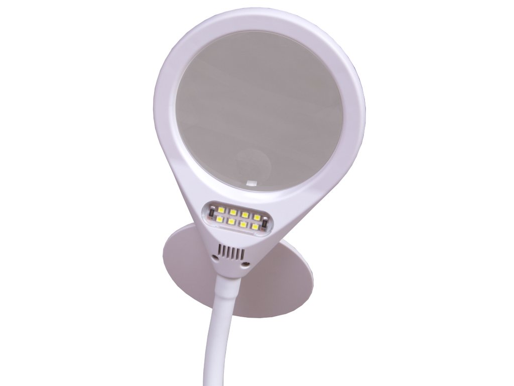 Lupa umožňuje práci s velkou plochou a poskytuje dvě zvětšení. Vedle čočky se nachází osvětlení, které se skládá z 8 LED žárovek s čirým světlem. Jas osvětlení lze regulovat. Osvětlení je napájeno střídavým napětím.