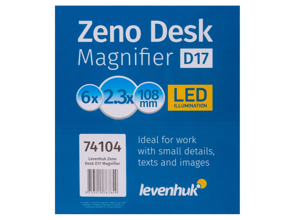 Stolní lupa Levenhuk Zeno Desk D17 má zajímavý design: může být připevněna téměř na jakýkoliv povrch. Můžete ji umístit na stůl nebo připevnit svorkou k polici nebo ke dvířkům skříňky. Tato lupa je vynikajícím pomocníkem v domácí dílně, v kuchyni nebo v řemeslné dílně, kanceláři nebo v servisním centru.