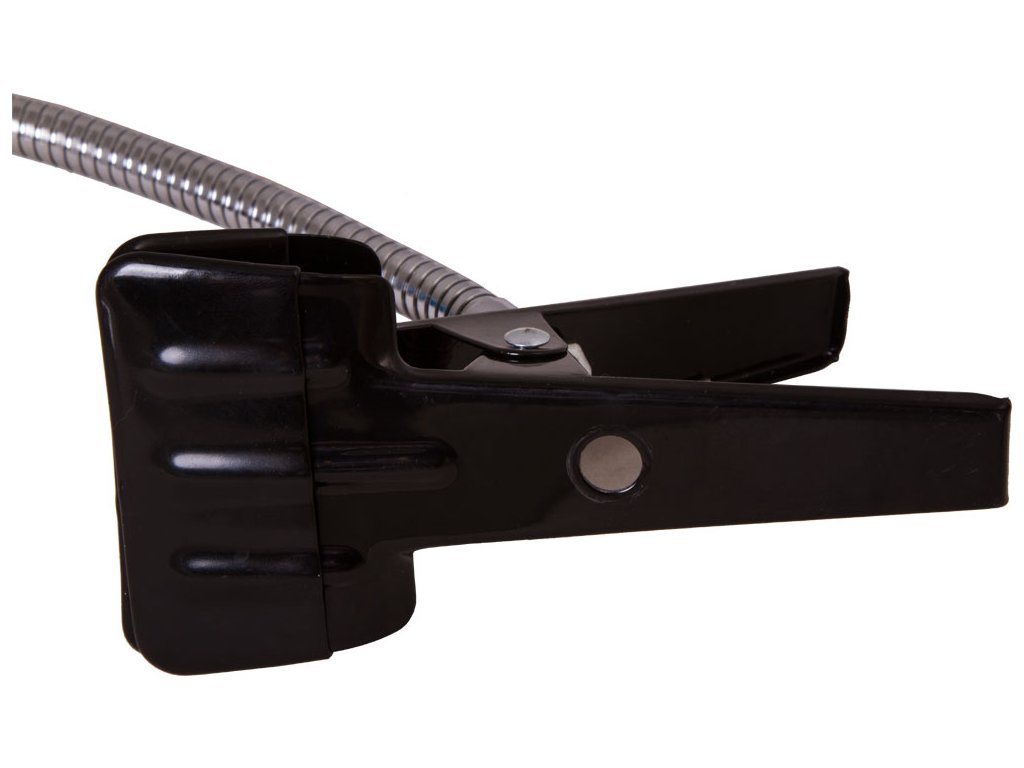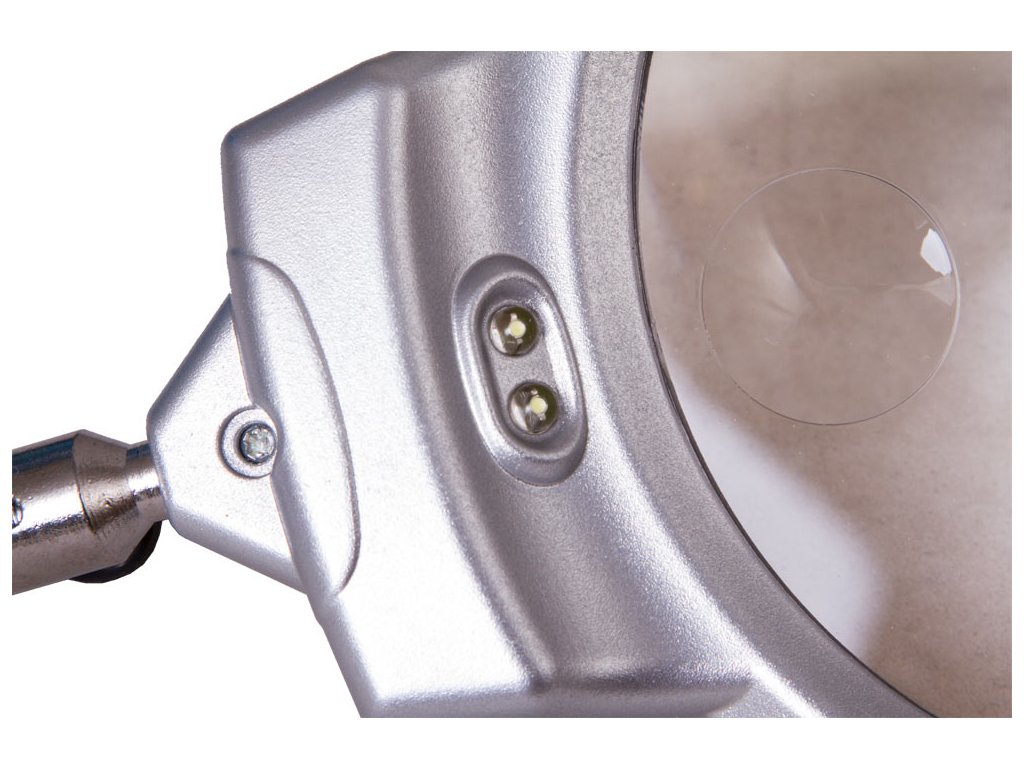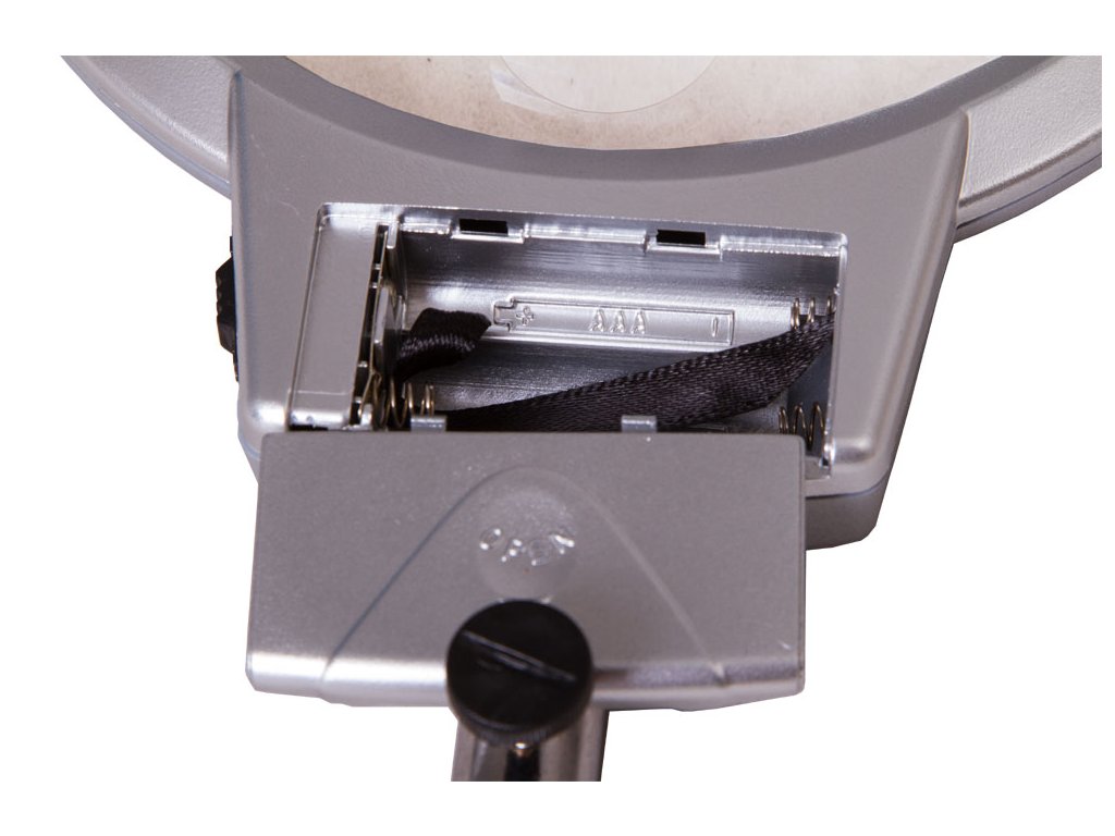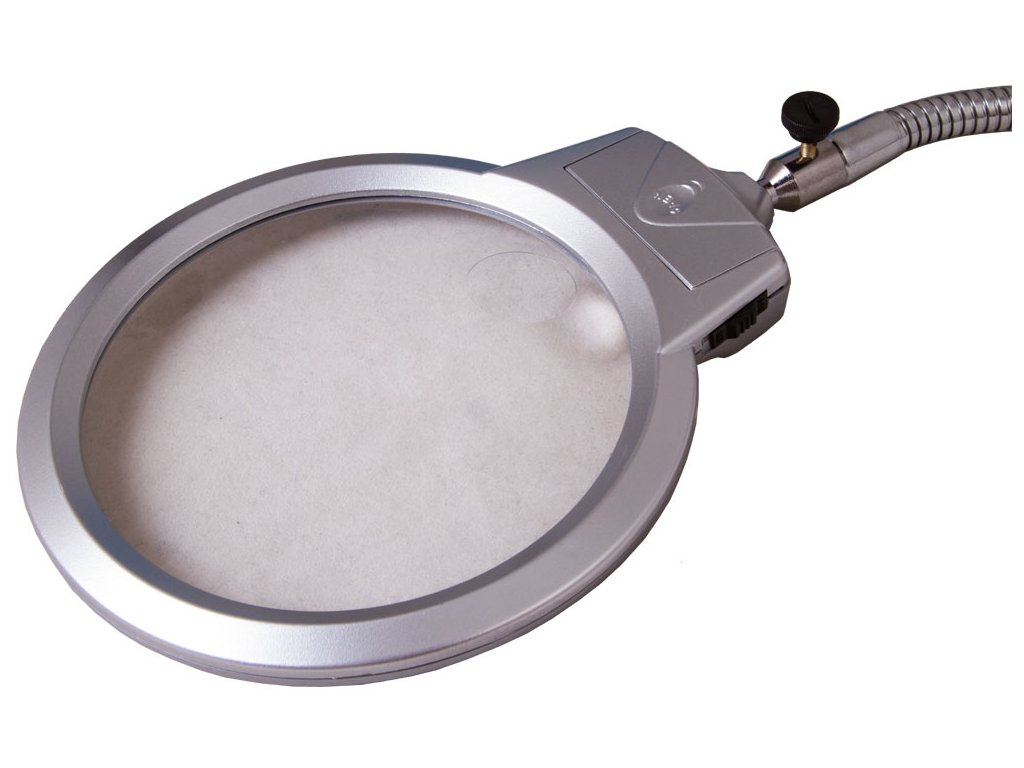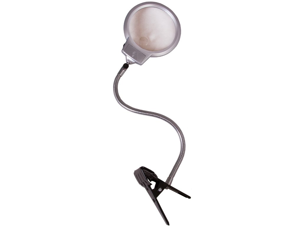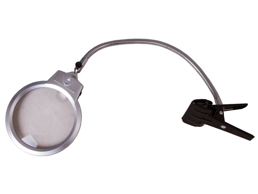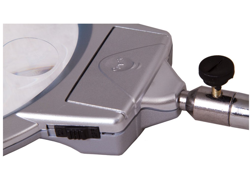 Speciální svorkou se lupa snadno upevní ke stolu, polici nebo dokonce i na dveře skříně. Vestavěné osvětlení umožňuje pozorování objektů i ve špatných světelných podmínkách. Skládá se ze dvou světelných diod instalovaných v rámu čočky. Chcete-li osvětlení zapnout, stačí stisknout tlačítko napájení na plášti.