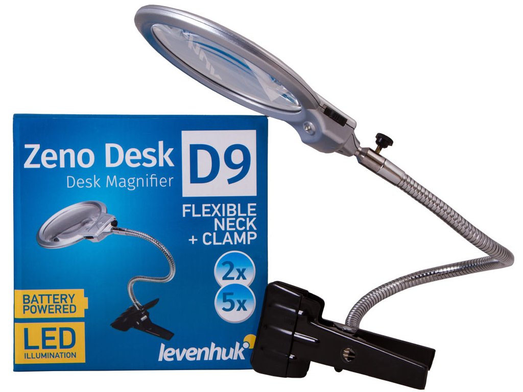 Lupa Levenhuk Zeno Desk D9 je vhodný optický nástroj k důkladnému prohlížení malých předmětů. Bifokální čočka s velkým průměrem umožňuje pozorování objektů při různých hodnotách zvětšení. Ohebný krk pomáhá umístit čočku přímo nad požadovanou oblast. Čočka je vyrobena z odolného optického plastu.