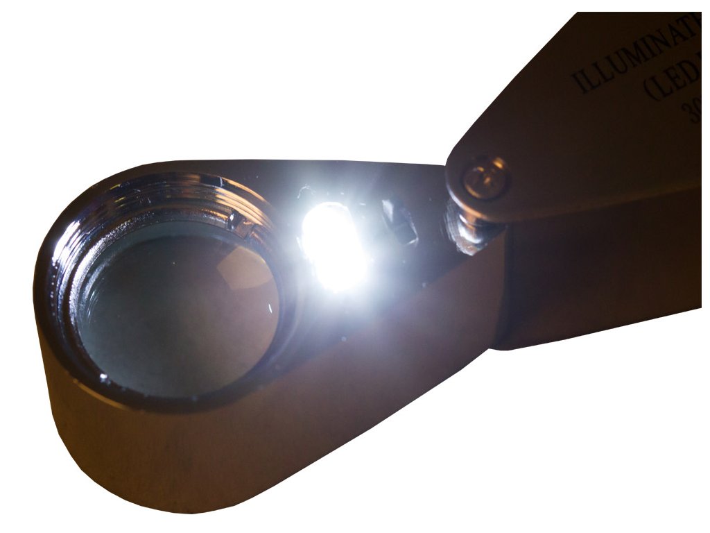 Vestavěné osvětlení se skládá ze dvou diod, umístěných ve spodní části lupy. V zájmu ochrany před jakýmkoliv náhodným poškozením jsou rám čočky a plášť lupy vyrobeny z kovu. Samotná čočka je vyrobena ze skla a poskytuje velmi ostrý a kontrastní obraz.