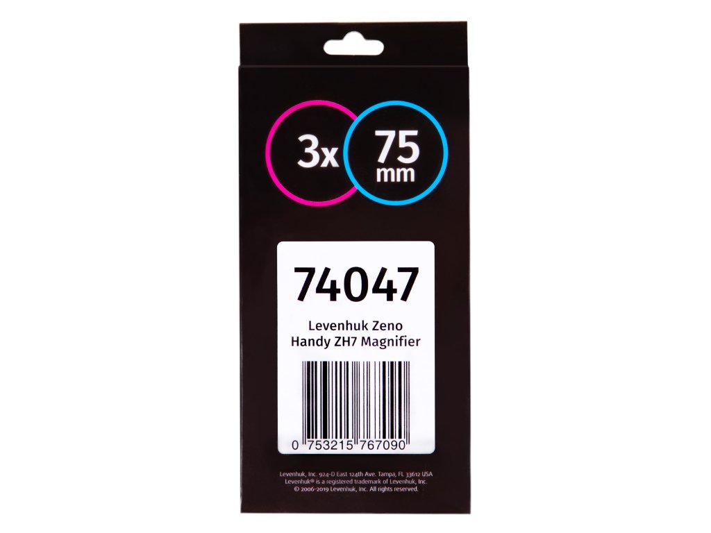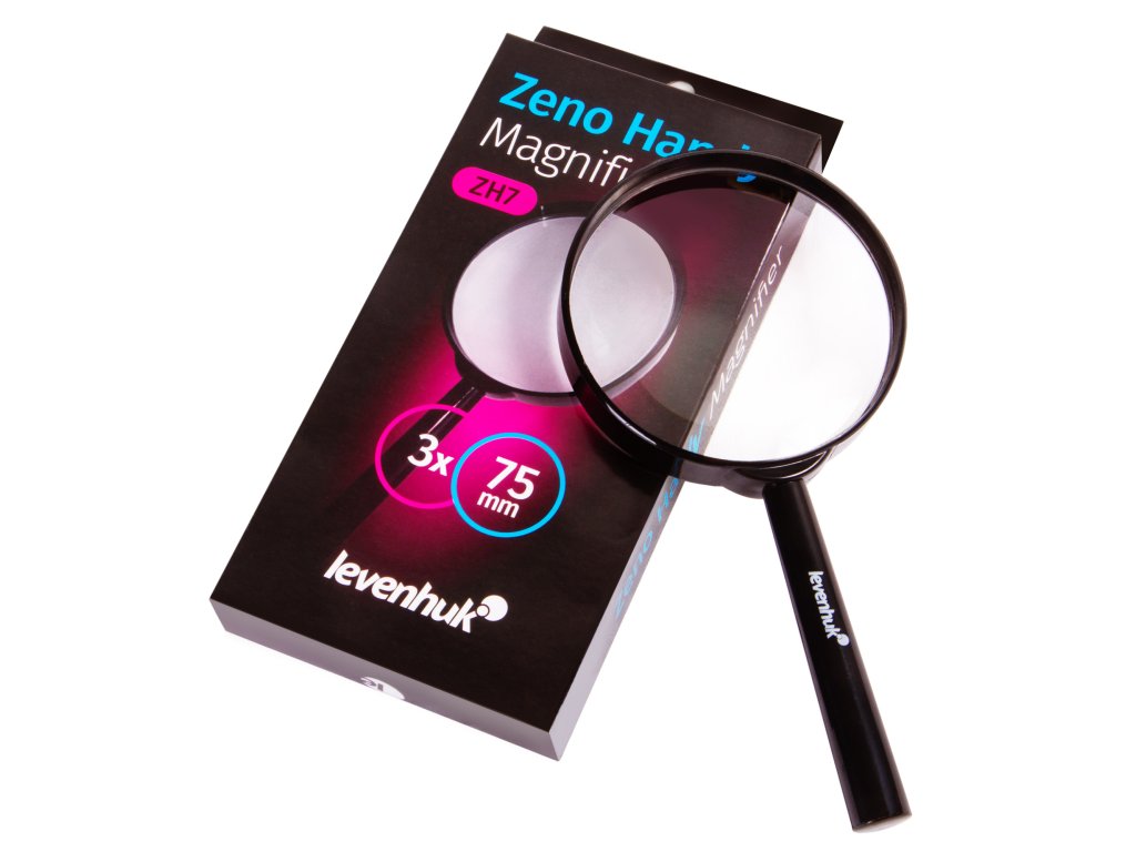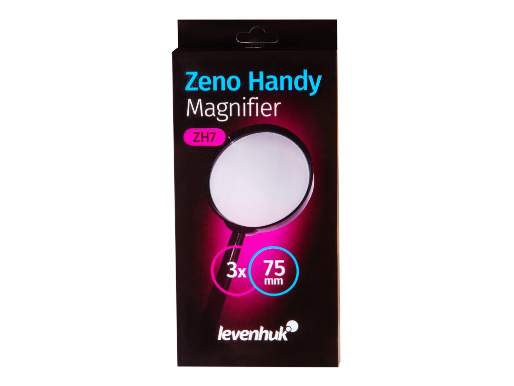 Lupa Levenhuk Zeno Handy ZH7 je klasická ruční lupa pro studium malých předmětů. Je vhodná pro čtení návrhů a textů s malými písmeny, zkoumání defektů v nábytku a tkaninách a pro práci s malými předměty. Je dokonalým pomocníkem při prohlížení fotografií nebo ilustrací v albech, stejně jako při kontrole šperků a zeměpisných map. Velký průměr čoček umožňuje pracovat se širokými plochami najednou.