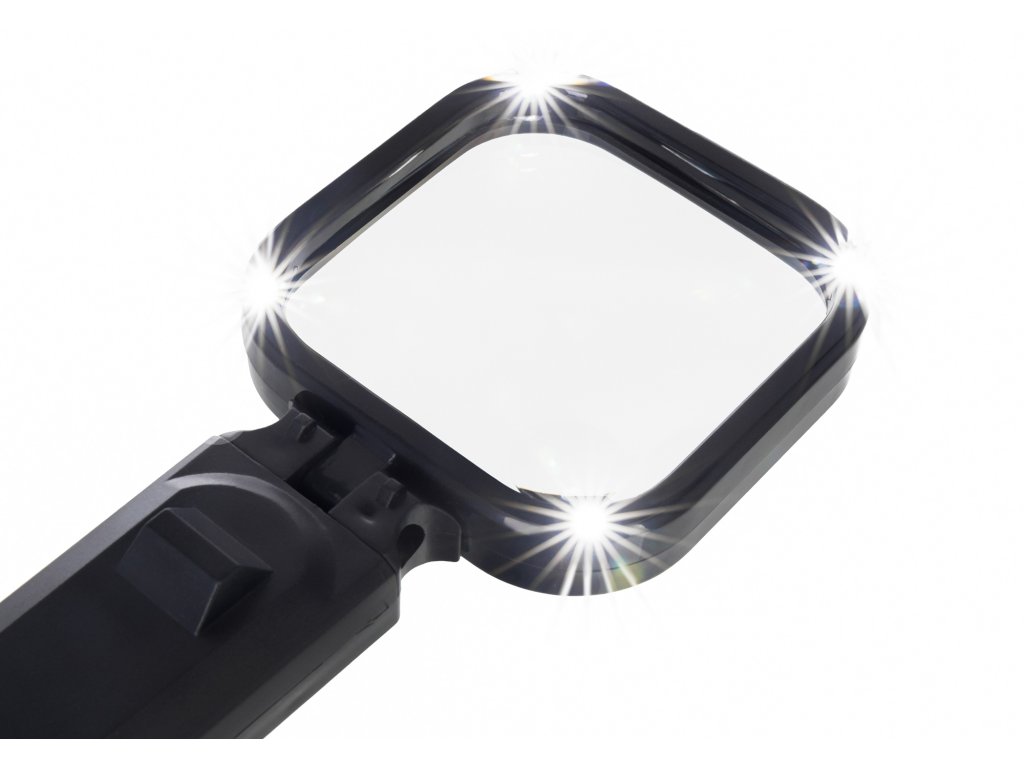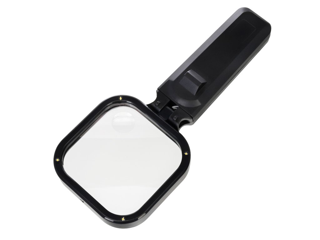 Všechny optické prvky této lupy jsou vyrobeny z optického polymerového skla. Lupa se díky své nízké hmotnosti dobře drží v ruce. Čočka poskytuje ostrý obraz bez rozmazání nebo optických vad. Lupa poskytuje variabilní úhel sklonu. Vedle čočky je k dispozici také LED osvětlení. Jas lze nastavit pomocí spínače na těle lupy. Osvětlení vyžaduje nabíjení pomocí baterií (nejsou součástí dodávky).