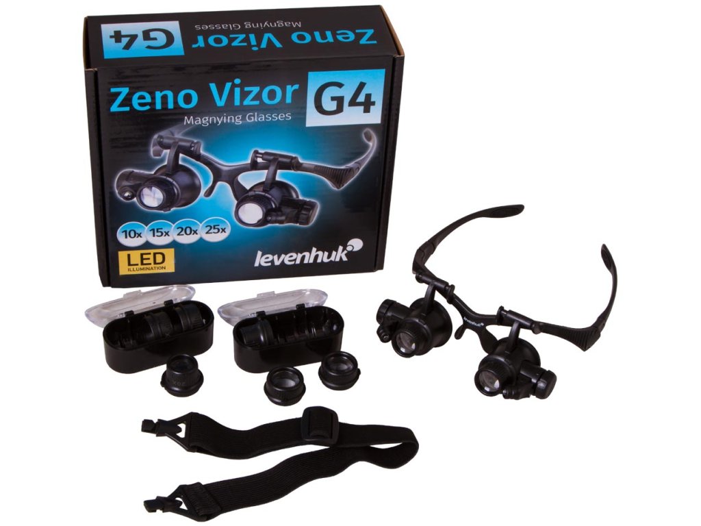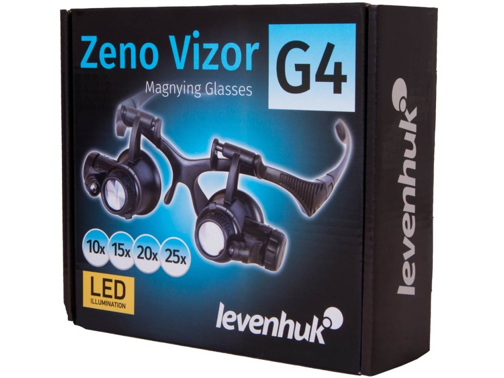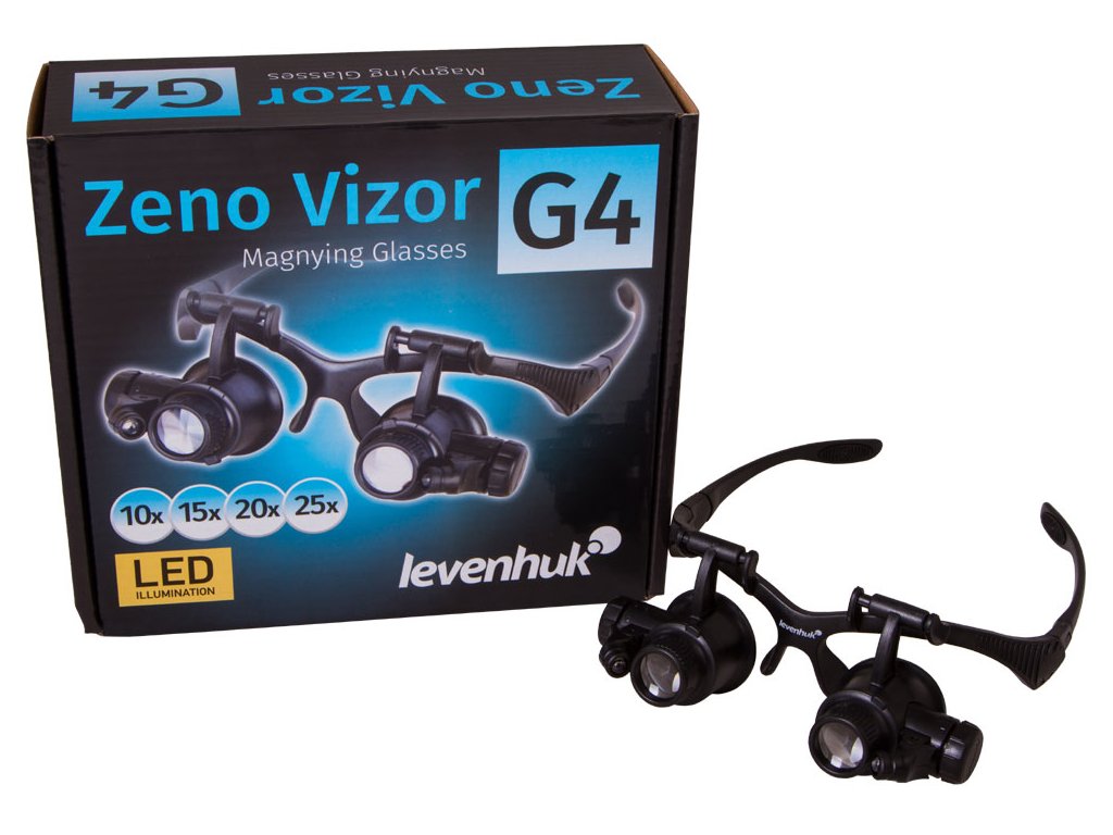 Lupa Levenhuk Zeno Vizor G4 je výkonným zvětšovacím nástrojem pro časově náročnou práci s malými předměty. Nabízejí zvětšení od 10x do 25x a mají zabudované LED osvětlení. Můžete je používat při denním světle nebo za špatných světelných podmínek. Tyto lupy jsou nepostradatelné při opravách, při práci s hodinami nebo šperky. Pohodlná brýlová obruba nechává vaše ruce volné pro práci s pozorovanými objekty.