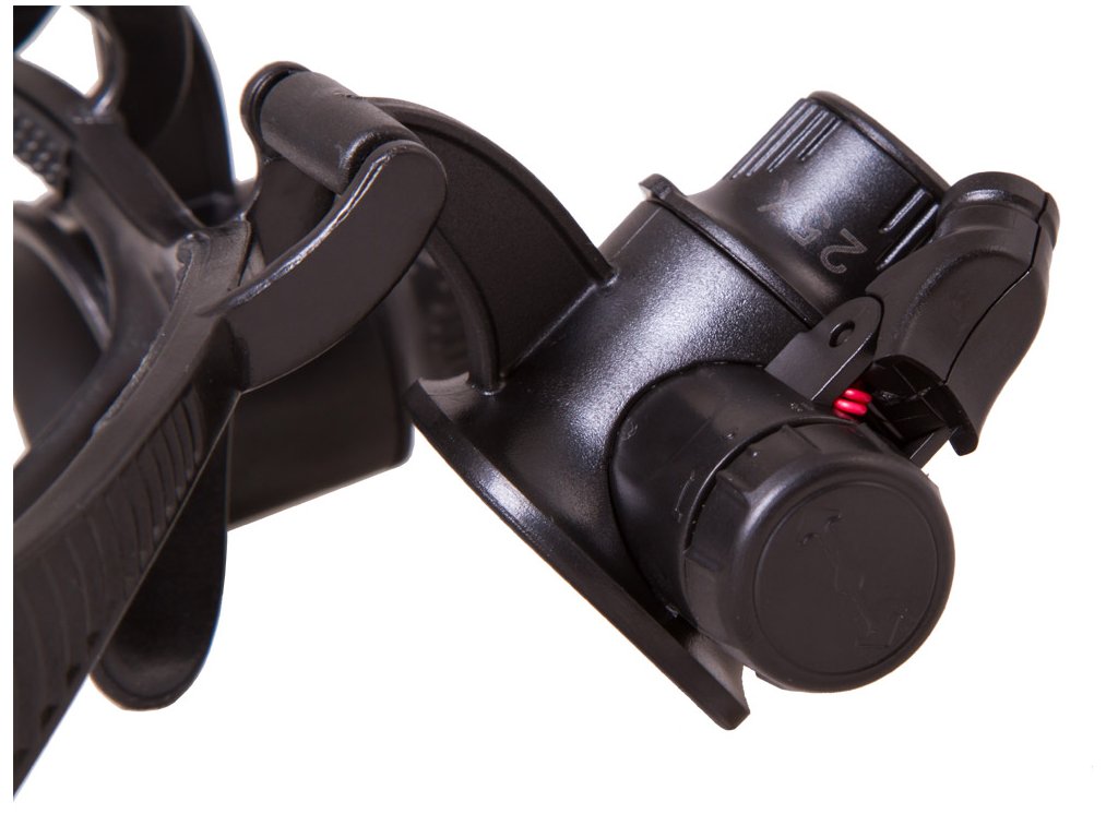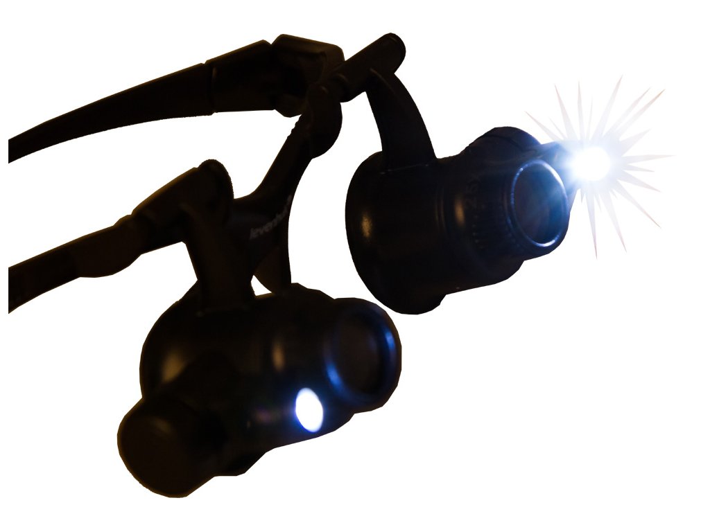Vyměnitelné čočky umožňují nastavit vhodné zvětšení pro jakýkoli účel. Každá dvojice čoček je vyrobena z optického plastu. Pokud je potřeba pozorovat objekt bez zvětšení, můžete jednu nebo obě čočky otočit nahoru, aniž byste je sundávali z obruby. Každá čočka je opatřena jasně zářící světelnou diodu. Světelný paprsek lze nasměrovat pohybem objímky osvětlení.