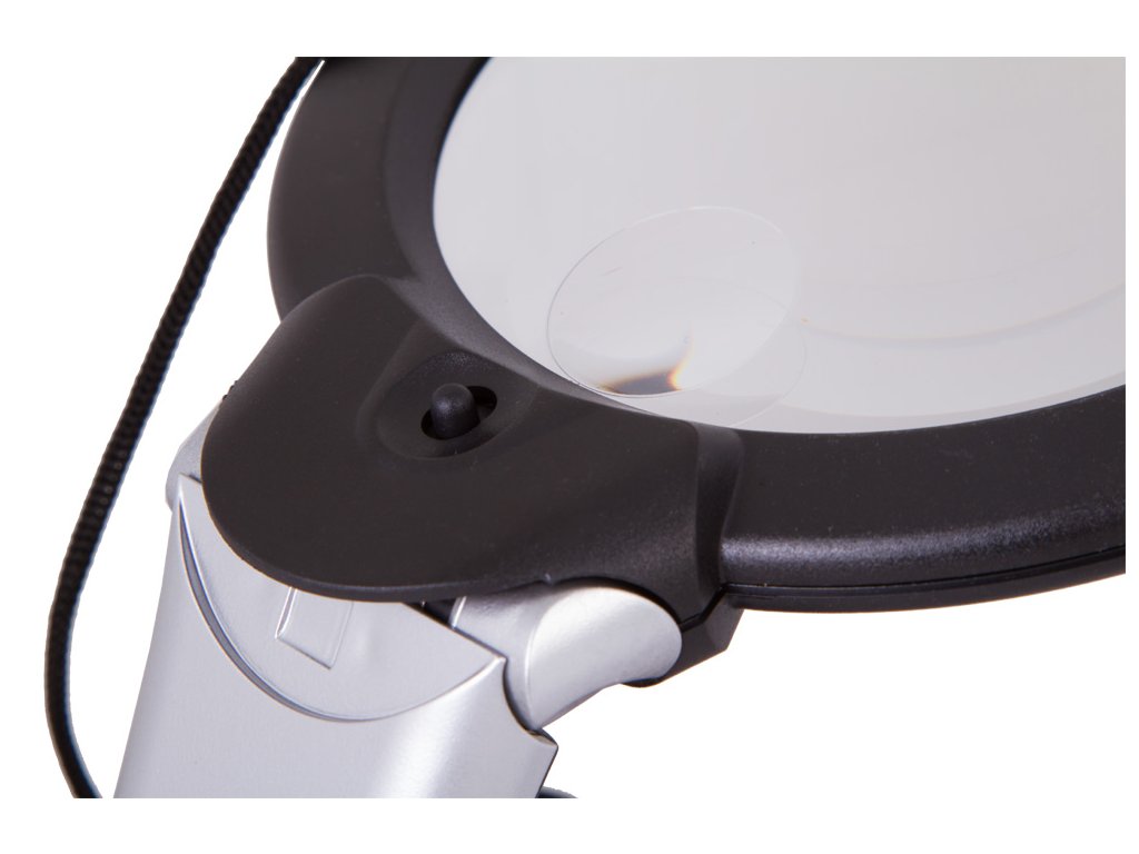Hlavní čočka nabízí zvětšení 2,5x a doplňková čočka pak 5x. Lupa Levenhuk Zeno N2 je vybavena integrovaným LED osvětlením, které vám umožňuje pracovat i při slabém přírodním nebo umělém světle. Díky stativu můžete mít obě ruce volné a provádět složitější úkony.
