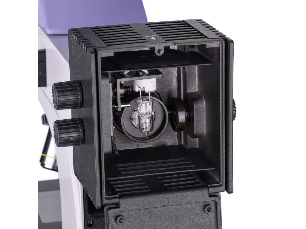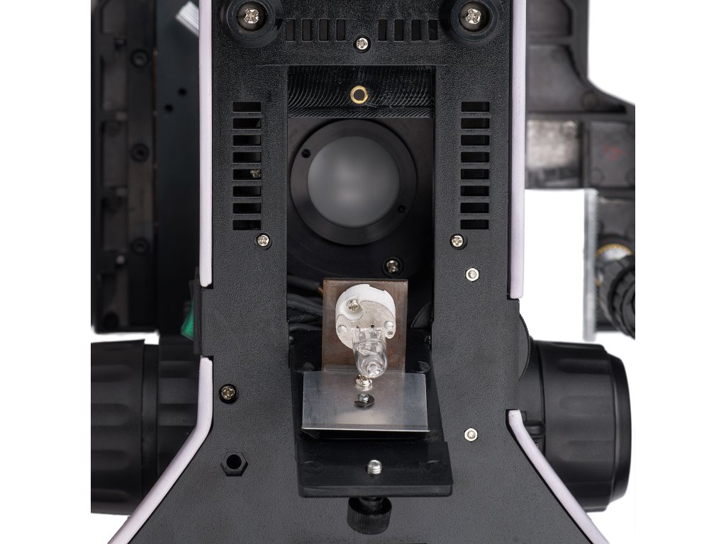 - Osvětlovací soustava pro pozorování v procházejícím světle – 30 W halogenová žárovka, osvětlovací soustava pro pozorování v odraženém světle – 50 W halogenová žárovka zajišťuje pohodlnou práci při mikroskopování v tmavém poli