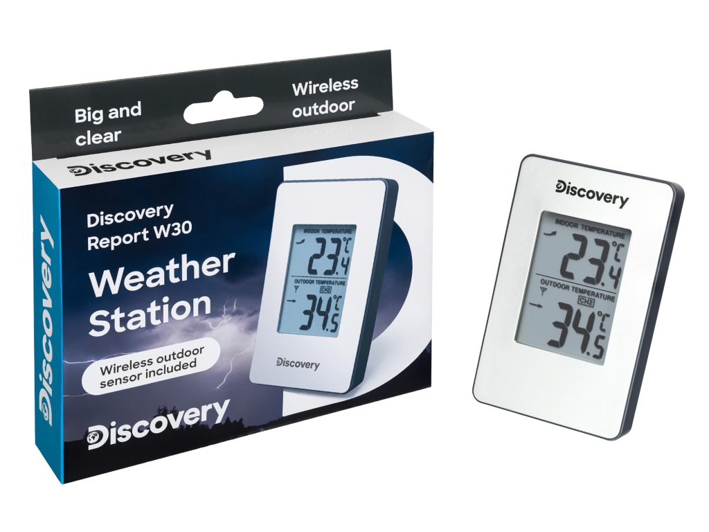 Se zařízením Levenhuk Discovery Report W30 budete vždy znát teplotu ve vaší místnosti i venku. Díky tomu si nyní budete moci správně naplánovat, jak se obléknout na procházku, a rychle reagovat na případné změny domácího mikroklimatu. Hlavní modul má černobílou obrazovku, která zobrazuje měření velkými číslicemi. Vzdálený senzor je součástí dodávky.