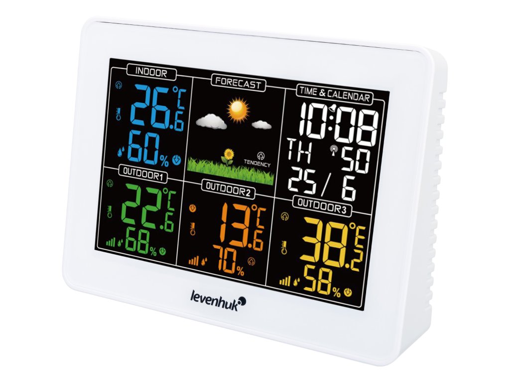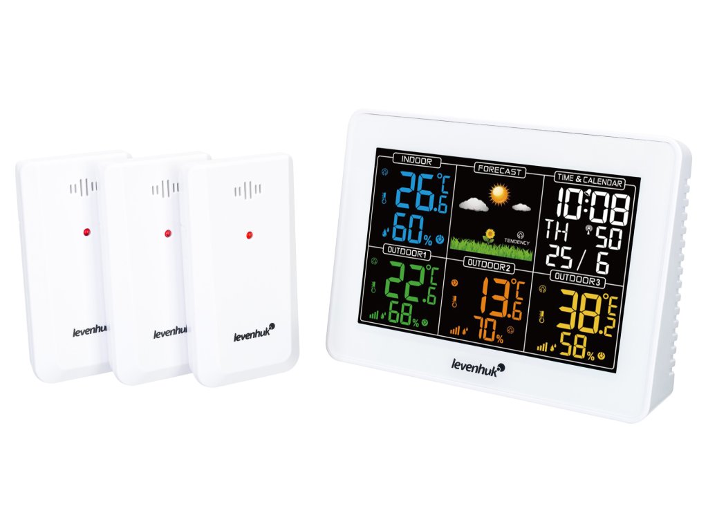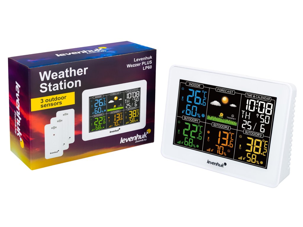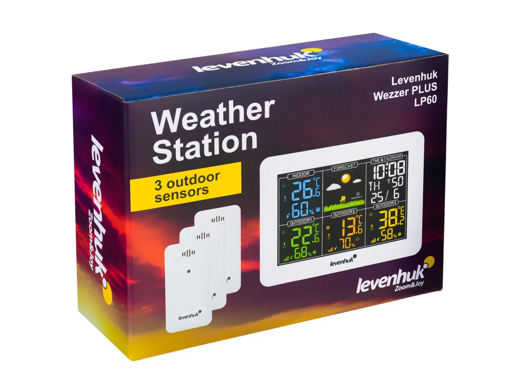 Meteorologická stanice Levenhuk Wezzer PLUS LP60 je kompaktní přístroj pro váš domov, kancelář nebo venkovský dům. K základnové stanici jsou připojeny tři senzory dálkového ovládání, díky kterým budete mít přehled o změnách počasí na čtyřech různých místech najednou. Meteorologická stanice vám pomůže udržet ideální mikroklima v obytných a firemních budovách a také vás bude informovat o blížícím se špatném počasí. Základnovou stanici lze umístit na stůl nebo okenní parapet; senzory mají nástěnné držáky.