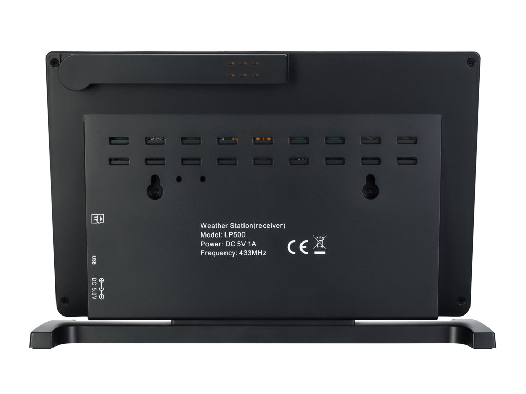 Všechny údaje se zobrazují na barevné obrazovce LCD s pohodlným rozdělením informací. Hlavní modul stanice je napájen ze zdroje se střídavým proudem. Dálkový senzor je napájen bateriemi a využívá také solární panel. Solární panel slouží pouze jako zdroj energie a nenabíjí baterie. Baterie je nutné zakoupit zvlášť; speciální indikátor vás upozorní na jejich vybití a nutnost výměny.