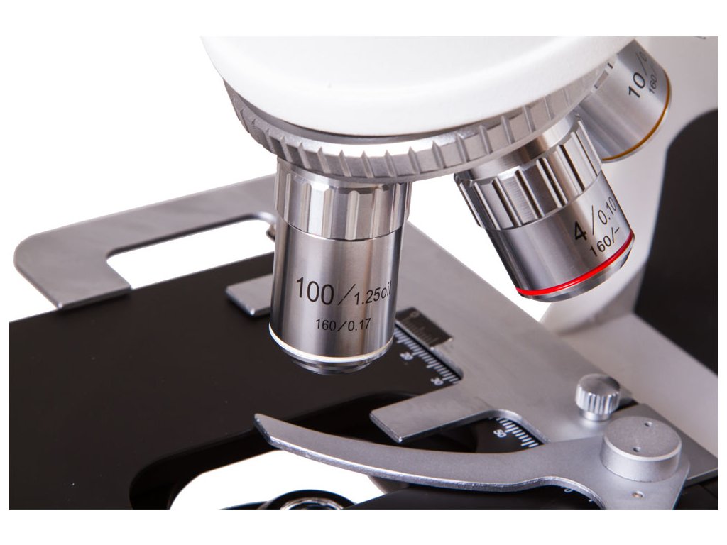 - 4 objectives with DIN 4x/10x/40x/100x (oil) magnification