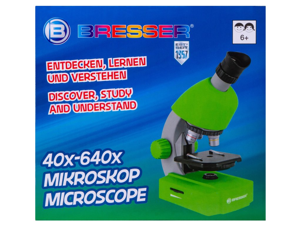 Dětský mikroskop Bresser Junior 40–640x je skvělý první mikroskop pro zvídavé dítě. Jedná se o snadno použitelný přístroj živých barev, který vaše dítě zabaví na dlouhou dobu! Mladí badatelé budou schopni studovat hotové mikroskopické preparáty, naučí se je samostatně připravovat a provádět zajímavé biologické pokusy. Kapka vody, listy pokojových rostlin, prach, jogurt z chladničky a další všední věci se ukážou ve zcela jiném světle. Sada obsahuje všechno potřebné příslušenství, přístroje a mikroskopické preparáty.