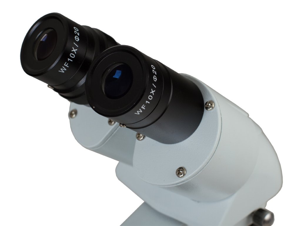 Mikroskop se dodává se dvěma páry širokoúhlých okulárů nabízejících zvětšení 10x a 20x. Mechanismus dioptrické korekce umožňuje uživatelům upravit přístroj tak, aby vyhovoval individuálnímu stavu jejich zraku.