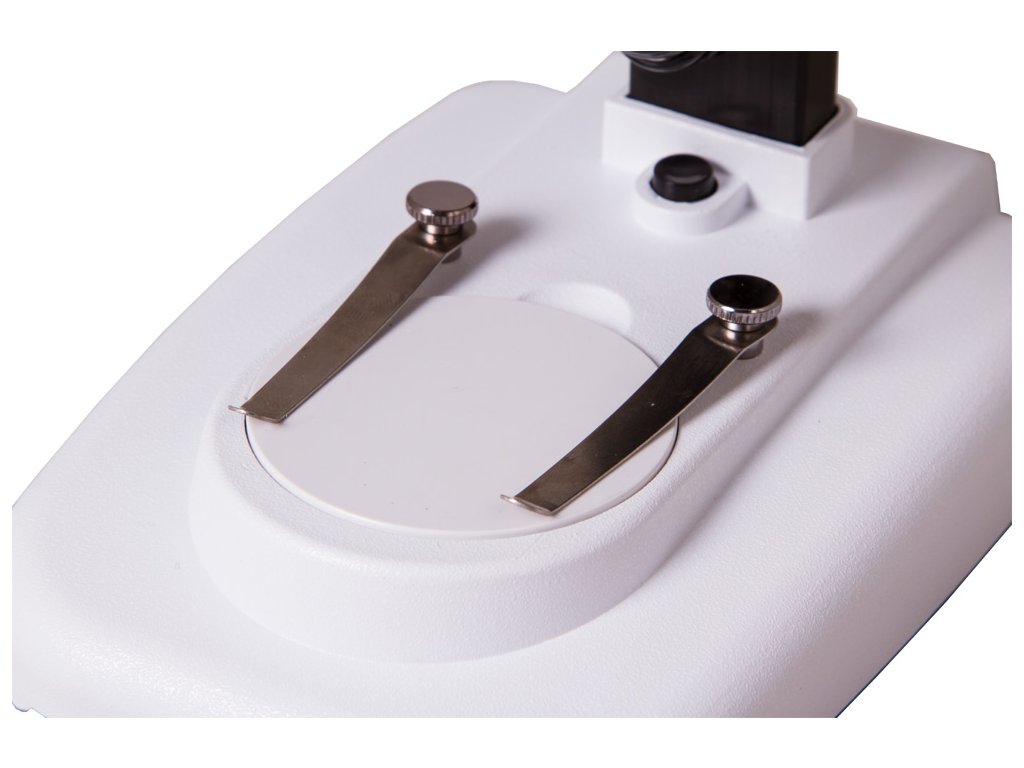 Čočky jsou vyrobeny z vysoce průhledného skla a umožňují prohlížení i těch nejdrobnějších detailů pozorovaných objektů. Pevné zvětšení 20x je vhodné ke zkoumání defektů různých povrchů a ke studiu biologických vzorků. Pozorované vzorky jsou na kulatém pracovním stolku (bílá deska) bezpečně upevněny speciálními kovovými svorkami.