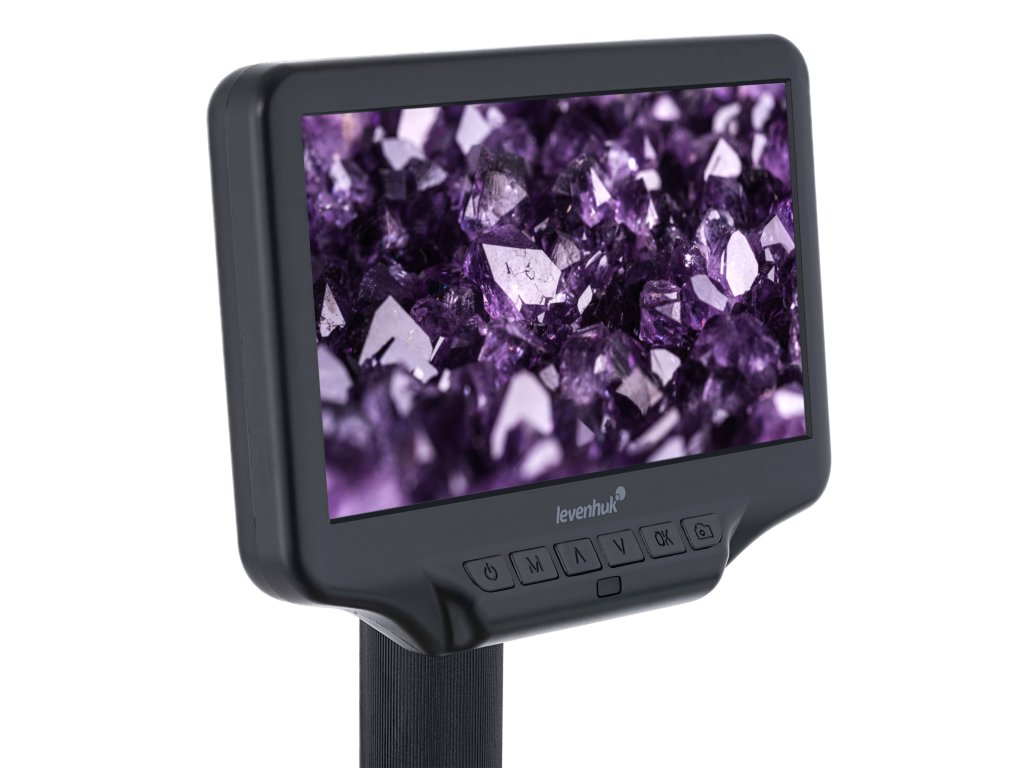 Integrovaná obrazovka má úhlopříčku 7". Obraz z objektivu se zobrazuje barevně, kontrastně a je snadno čitelný. Obrazovku lze mírně naklonit pro pohodlnější používání. Celkové zvětšení lze upravit v rozsahu 5x až 270x a optické zvětšení v rozsahu 5x až 40x. Obraz lze také zobrazit na externí obrazovce pomocí portu HDMI.