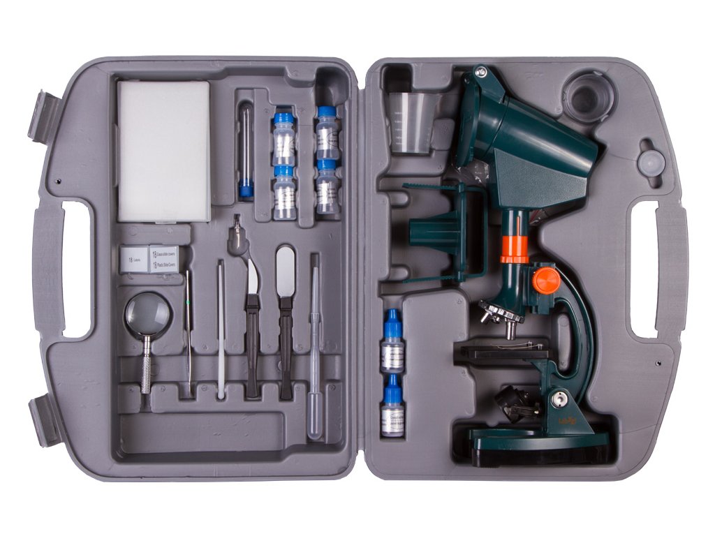 Mikroskop Levenhuk LabZZ M3 je opravdovým objevem pro zvídavé dítě. Má vše, o čem mladý vědec sní, a dodává se včetně 100 užitečných doplňků! Hotové mikroskopické preparáty, prázdná podložní sklíčka a krycí sklíčka, nástroje k přípravě preparátů, materiály pro experimenty – začínající biologové nebo chemici budou moci předvést veškerý svůj vědecký talent.