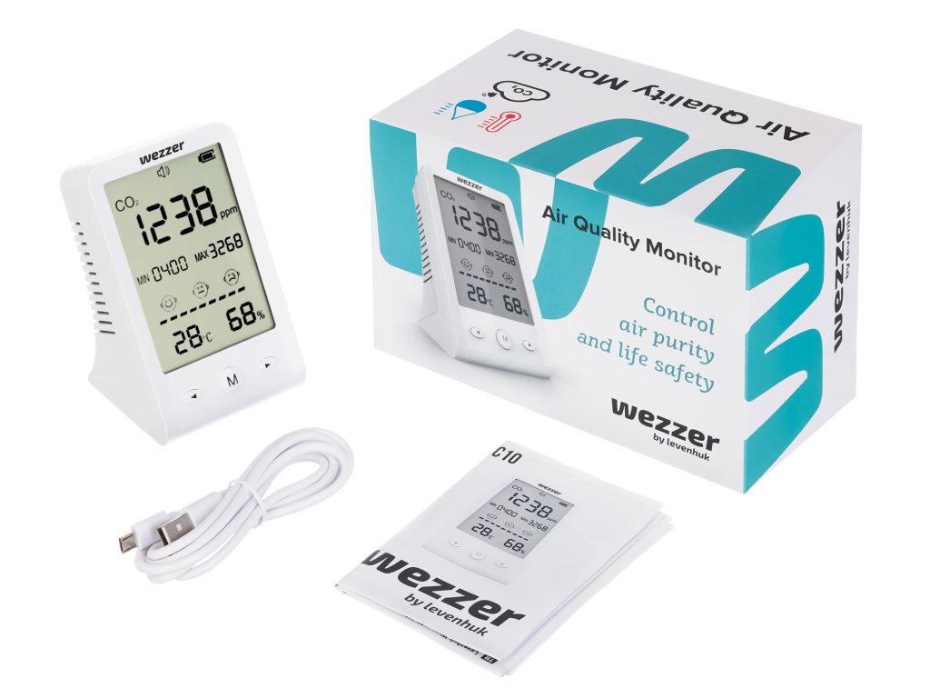 Přístroj Levenhuk Wezzer Air MC10 je nezbytnou pomůckou pro každého městského občana, zejména pro ty, kteří nemají ve svém každodenním režimu mnoho času na zlepšení svého zdraví a duševní pohody. Pokud dlouhodobě nevětráte místnost, ve které se nacházíte, koncentrace oxidu uhličitého ve vzduchu se výrazně zvyšuje, což má za následek nízkou výkonnost, únavu a bolesti hlavy. Abyste tomu zabránili, používejte monitor kvality ovzduší Levenhuk Wezzer Air MC10.