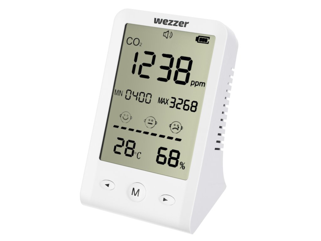 Tento přístroj má zabudovaný detektor hladiny koncentrace CO2, který rychle detekuje tyto negativní změny. Nejenže na obrazovce zobrazuje aktuální údaje, ale také vás upozorní na kritické hodnoty. Pokud jste zcela zaneprázdněni pracovním projektem nebo zaujati svým oblíbeným koníčkem a nesledujete naměřené hodnoty, přístroj vám připomene, kdy je čas místnost vyvětrat. Zaznamenává také minimální a maximální hodnoty a na stupnici graficky zobrazuje, jak dobré je mikroklima v místnosti.