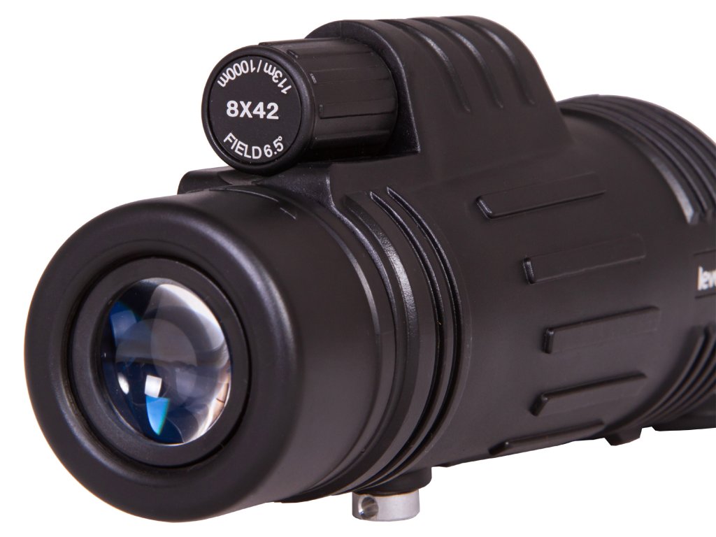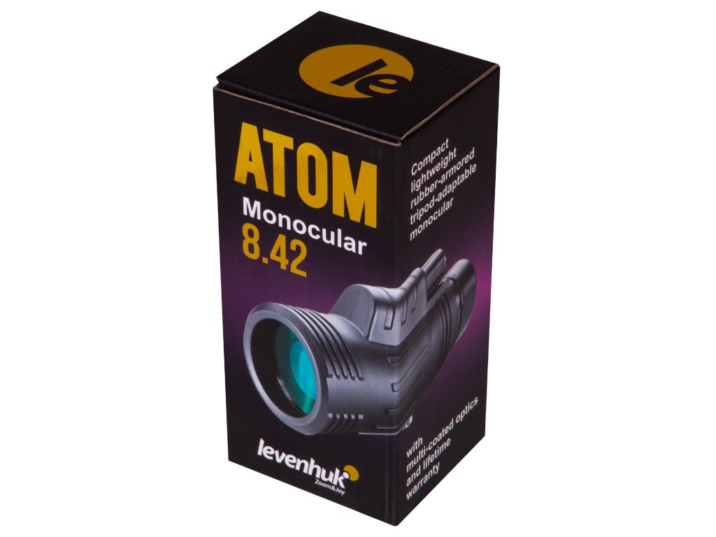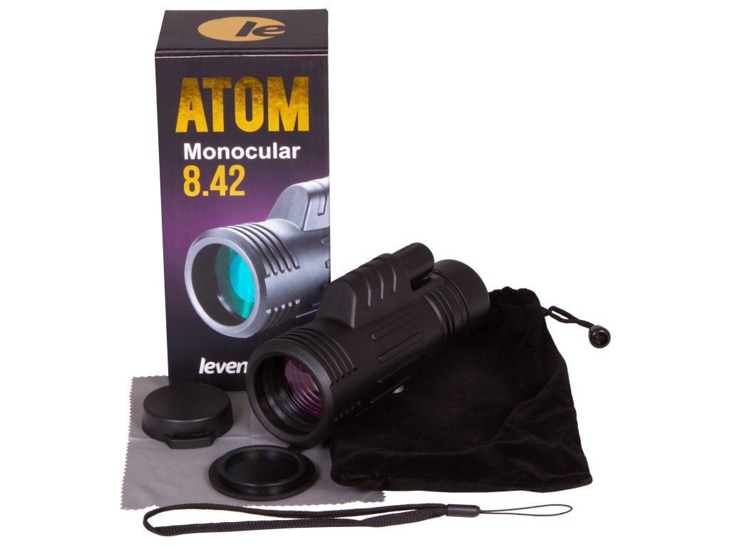 Tato monokulární optika je vyrobena z vícevrstvého skla BK-7. Výsledný obraz je ostrý, kontrastní a vizuálně příjemný. Čočky objektivu zachycují značné množství světla, a proto monokulární dalekohledy dobře fungují i za soumraku. Díky širokému zornému poli je tato optika vhodná pro pozorování velkých ploch. Levenhuk Atom 8x42 umožňuje pozorovat pohyblivé cíle, skupiny zvířat nebo davy lidí. Tento monokulární dalekohled obsahuje dlouhý oční reliéf a otočné (šroubovací) očnice, které jsou vhodné pro pozorování s brýlemi. K dispozici je korekce dioptrií pro osoby s nedokonalým zrakem.