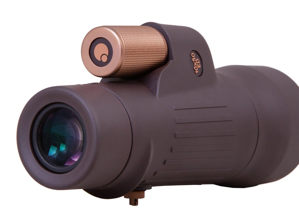 Optika s velmi nízkou disperzí odstraňuje parazitní světelné odlesky, které se objevují na okrajích obrazu v důsledku složitého lámání světla. Zabraňuje barevným chybám v celém zorném poli, ve středu i u okrajů. Tento monokulární dalekohled nabízí 10x přiblížení a jeho objektiv funguje bezchybně i za zhoršených světelných podmínek. Soustředí velké množství světla a díky tomu obraz zůstává jasný a zachovává si kontrast i při pozorování za soumraku nebo za oblačného počasí. Optika umožňuje zaostřit na objekty ve vzdálenosti dva metry a dále, díky čemuž lze pozorovat i objekty v interiéru. Praktický dlouhý oční reliéf navíc umožňuje pozorování s nasazenými brýlemi bez nutnosti je při používání optického přístroje odložit.