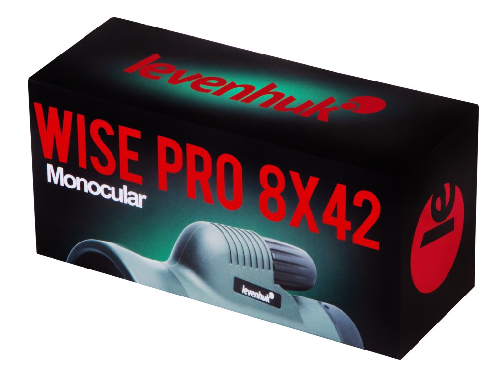 Monokulární dalekohled Levenhuk Wise PRO 8x42 je skvělou alternativou k profesionálním binokulárním dalekohledům. Je menší a lehčí, s vynikající kvalitou obrazu. Tento monokulární dalekohled je stejně vhodný pro pozorování i pro podrobné zkoumání velice vzdálených objektů. Skvělá kombinace velkého zvětšení a širokého zorného pole doplněná citlivou clonou pro pozorování i za zhoršených světelných podmínek.