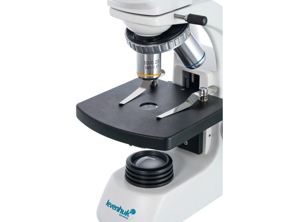 Stolek je vybaven dvěma držáky; přímo pod ním je Abbeho kondenzor s irisovou clonou. Do speciálního držáku můžete nainstalovat světelné filtry (sada obsahuje modré, zelené a žluté světelné filtry). Pro zaostření se používá standardní koaxiální mechanismus. K dispozici je jemné a hrubé zaostření.
