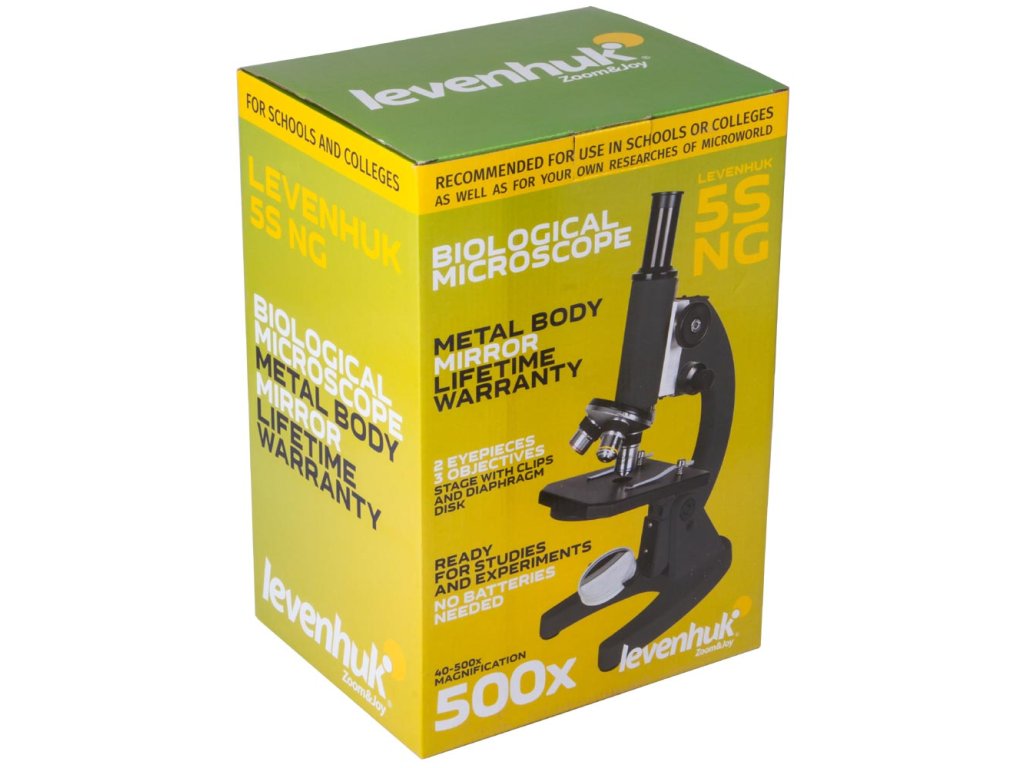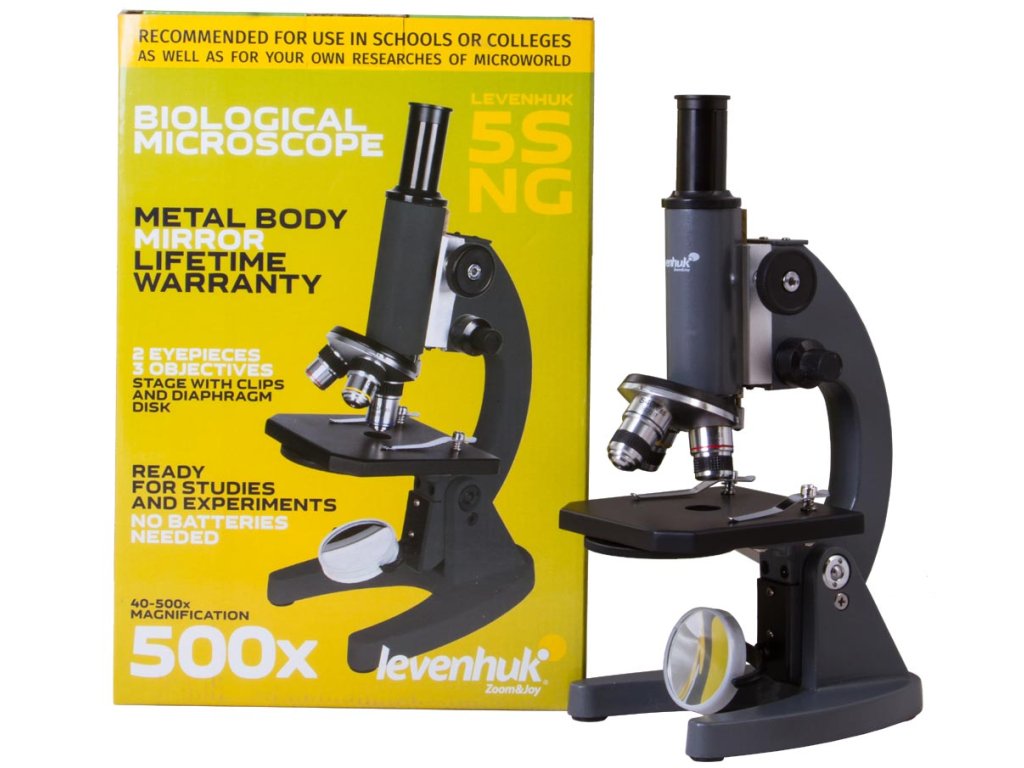Mikroskop Levenhuk 5S NG je optický přístroj základní úrovně, který je vynikající ke studiu nebo vědecké zájmové činnosti. Bude báječným společníkem pro dítě, školáka nebo středoškolského studenta. Pomocí mikroskopu Levenhuk 5S NG můžete provádět laboratorní práce v oblasti biologie, v klidu domova dělat vědecké pokusy a zkoumat mikrosvět. Mikroskop nabízí zvětšení až 500x, které zajišťuje úžasný pohled na jednobuněčné organismy. Toto zvětšení je dostatečné ke zkoumání připravených mikroskopických preparátů.