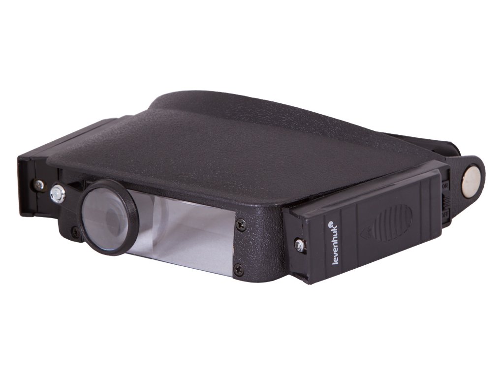 Náhlavní lupa Levenhuk Zeno Vizor H1 je kompaktní přenosná lupa nabízející čtyři úrovně zvětšení. Sada obsahuje přídavnou výsuvnou čočku vyrobenou z kvalitního optického polymerového skla. Na pravém oku je speciální sklopná čočka. Rozsah zvětšení je od 1,5x do 8x.